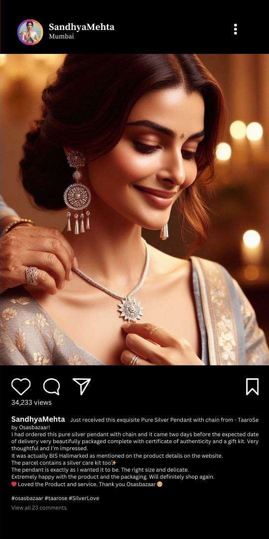 - Use relevant hashtags like #osasbazaar #taarose #SilverLove to reach a wider audience.