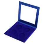 This coin box is a stylish and elegant box made to hold and display four silver coins. The box is strong and has a clear front, so you can see the coin inside without opening it. The inside is lined with soft blue velvet, which protects the coin and feels luxurious.