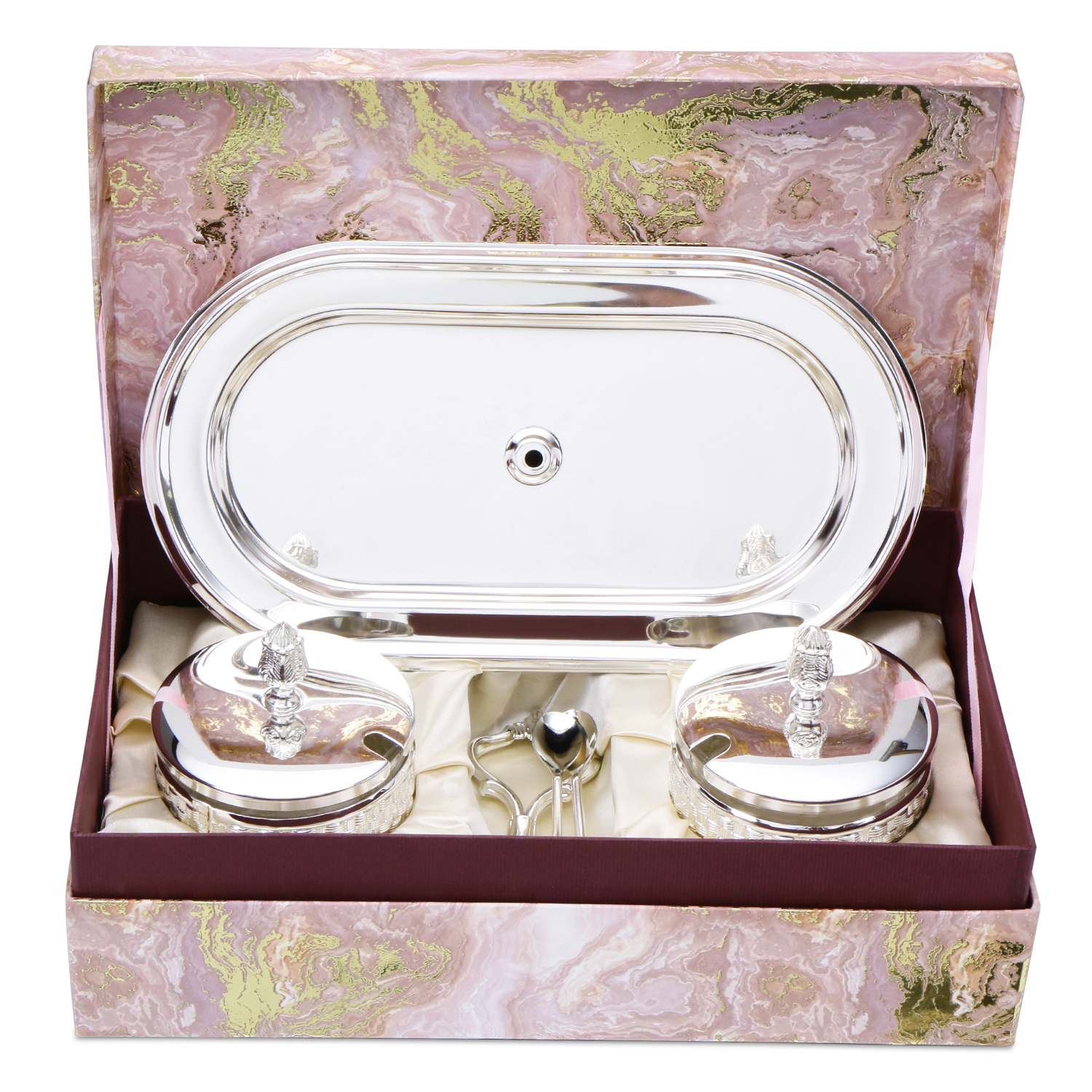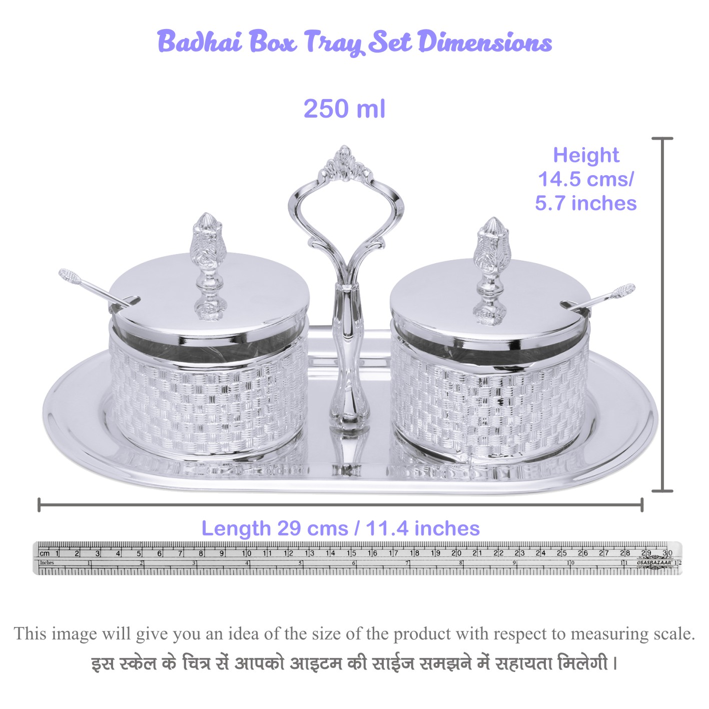 Badhai Box by Osasbazaar Silver Plated Jars With Tray Set