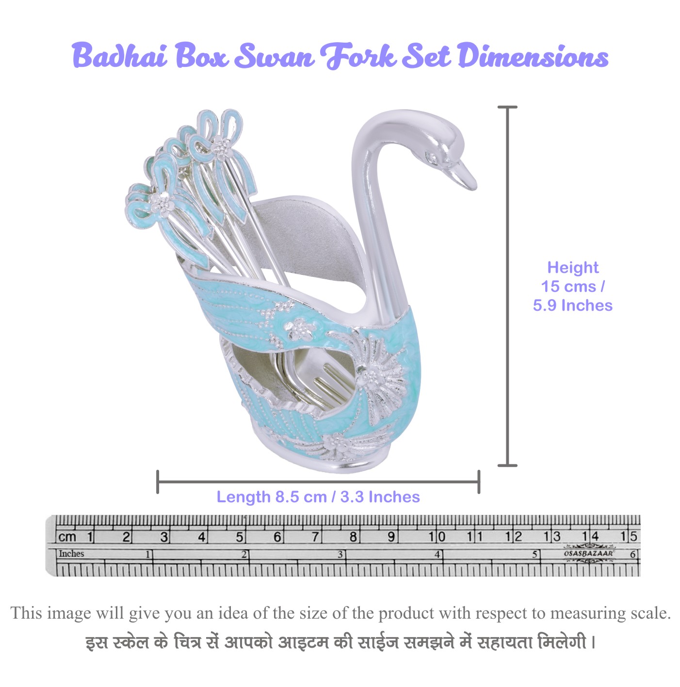 Badhai Box by Osasbazaar Silver Plated 6 piece Fork Set With Swan Shaped Holder: