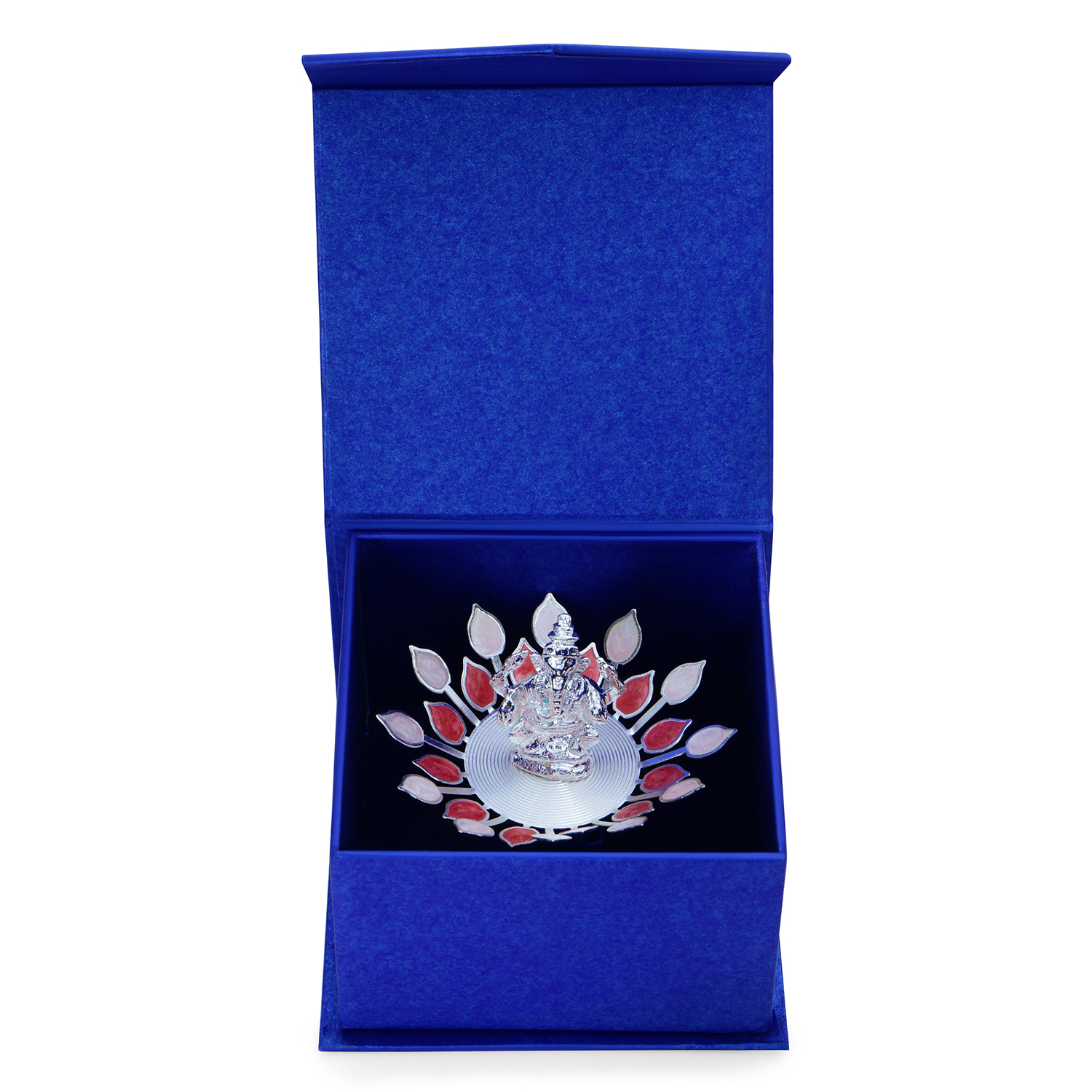 Badhai Box by Osasbazaar Ganesh Idol on Red Pink Flower – Silver Plated: