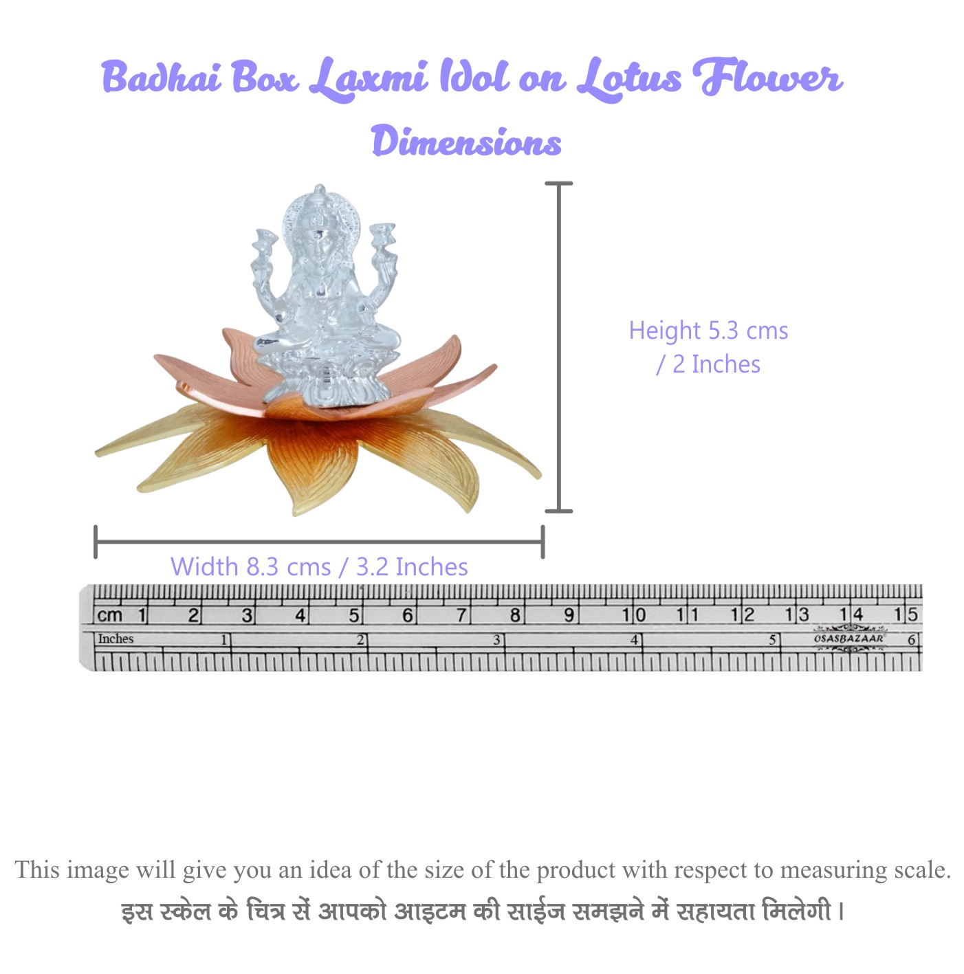 Badhai Box by Osasbazaar Laxmi Idol on Lotus Flower – Silver Gold and Rose Gold Plated: