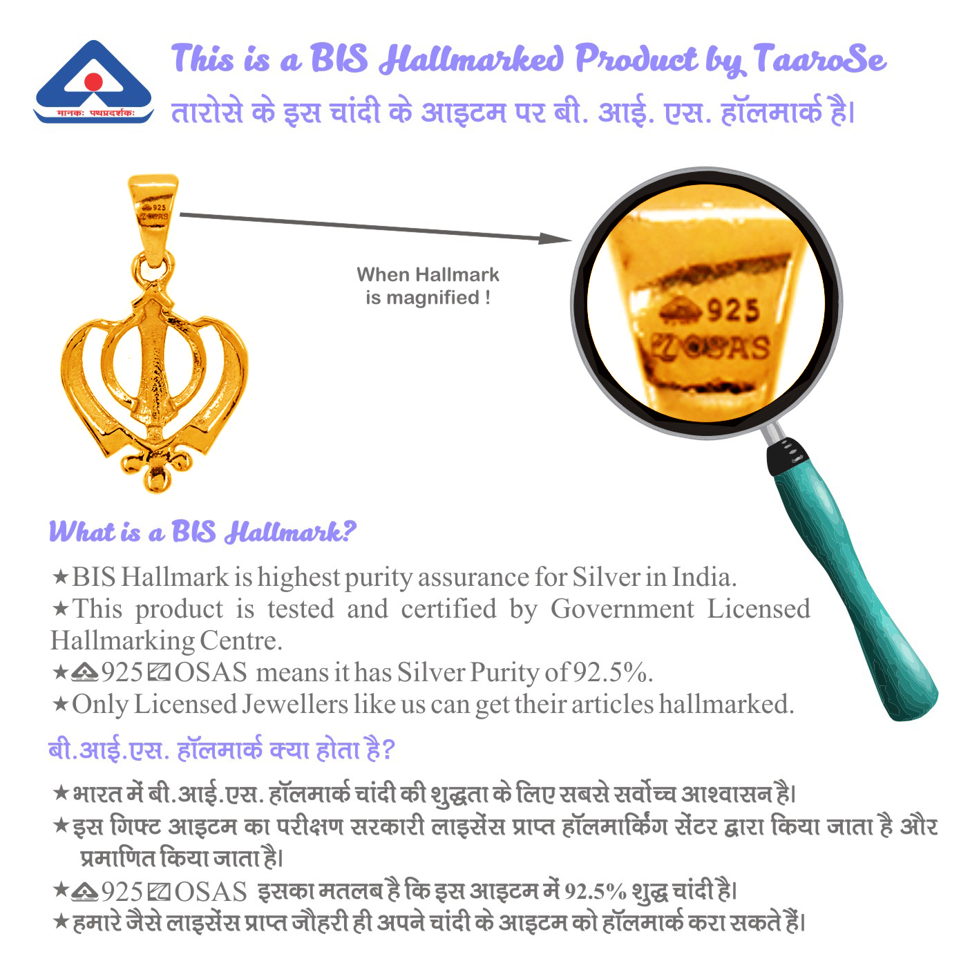 Both Pendant and Chain are BIS Hallmarked