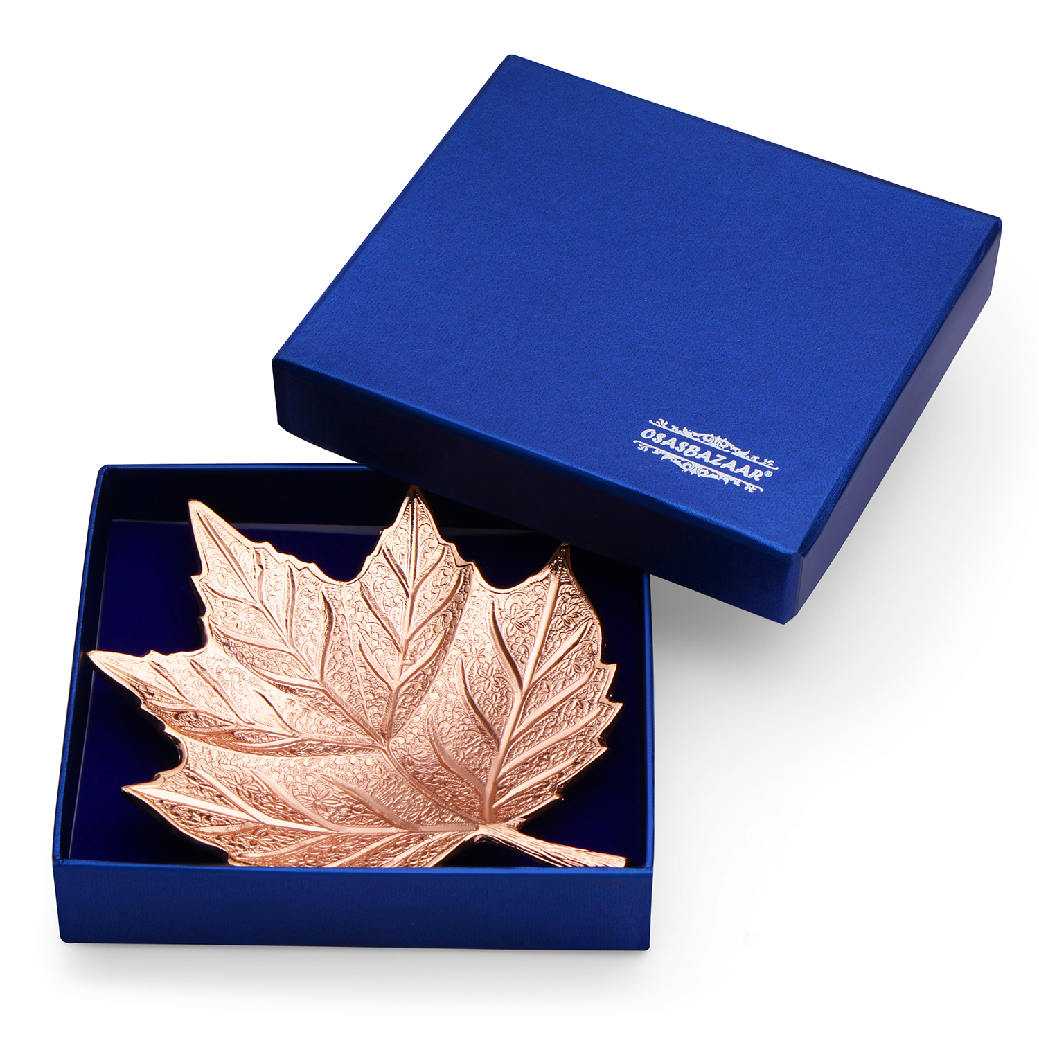 Badhai Box by Osasbazaar Premium Leaf Shaped Serving Platter – Rose Gold Plated: