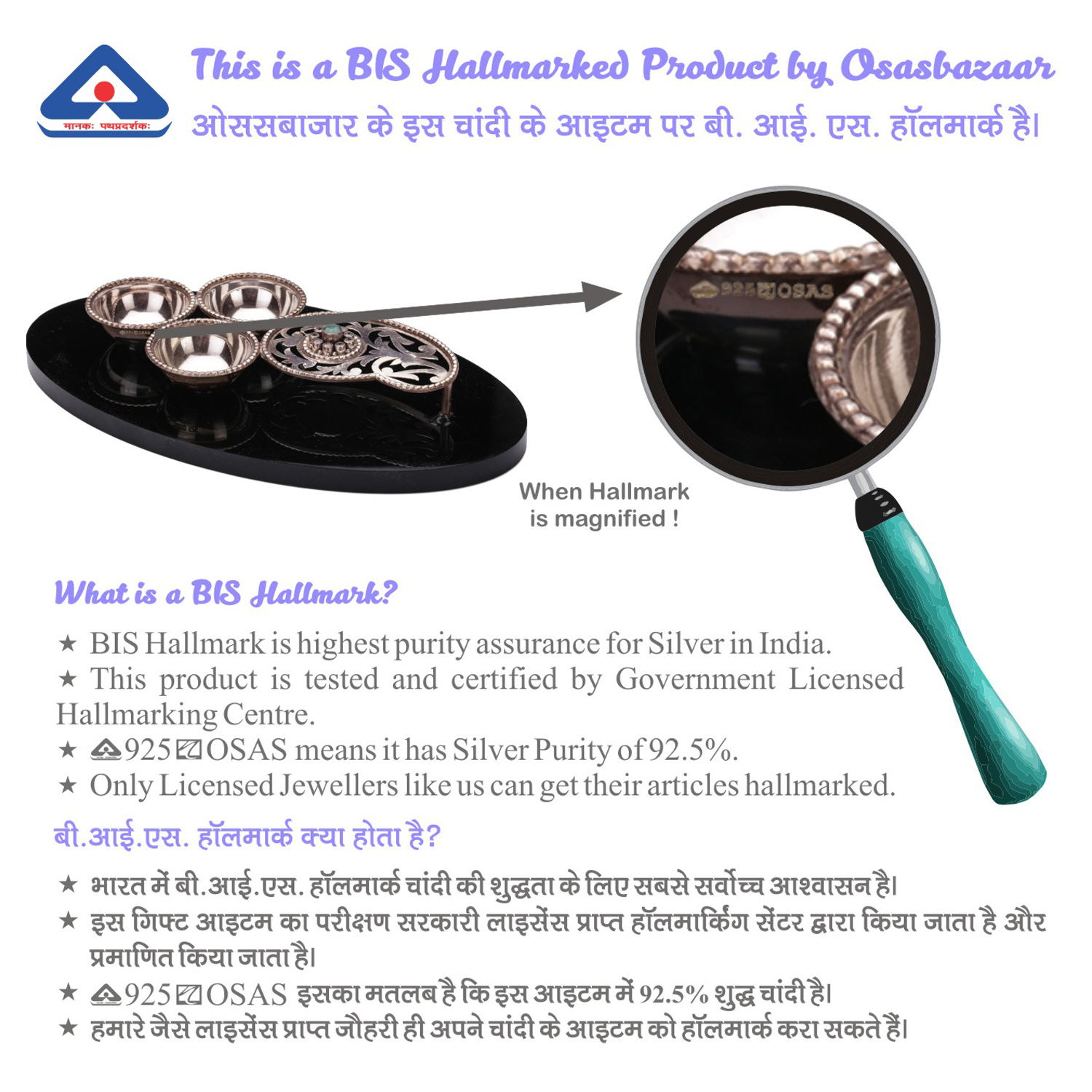 Osasbazaar Pure Silver Chandan Haldi Kumkum Roli Chawal Chopda Box Showpiece for Home Décor and Puja – BIS Hallmarked: