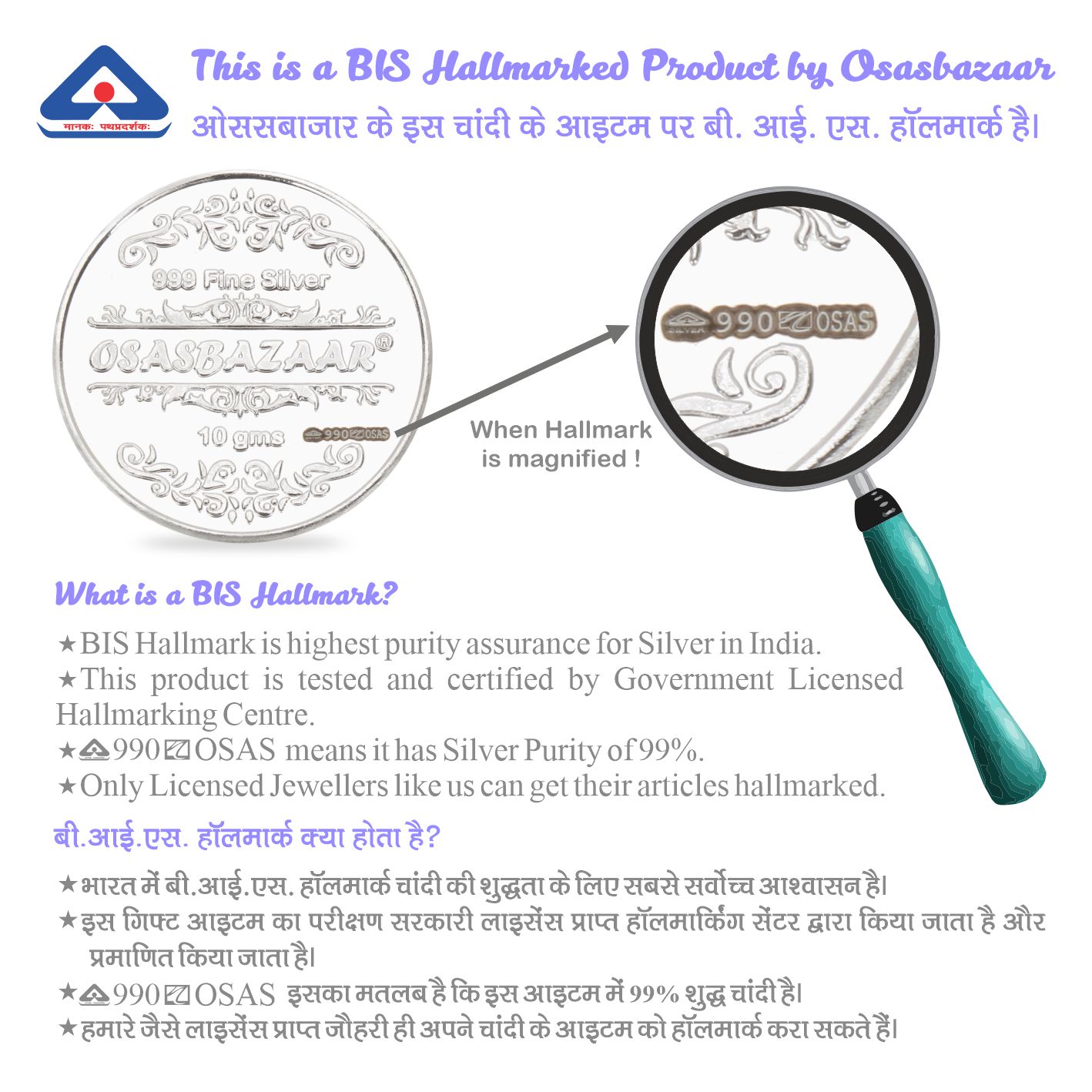 Osasbazaar Pure Silver Coin for Wedding Anniversary – BIS Hallmarked: