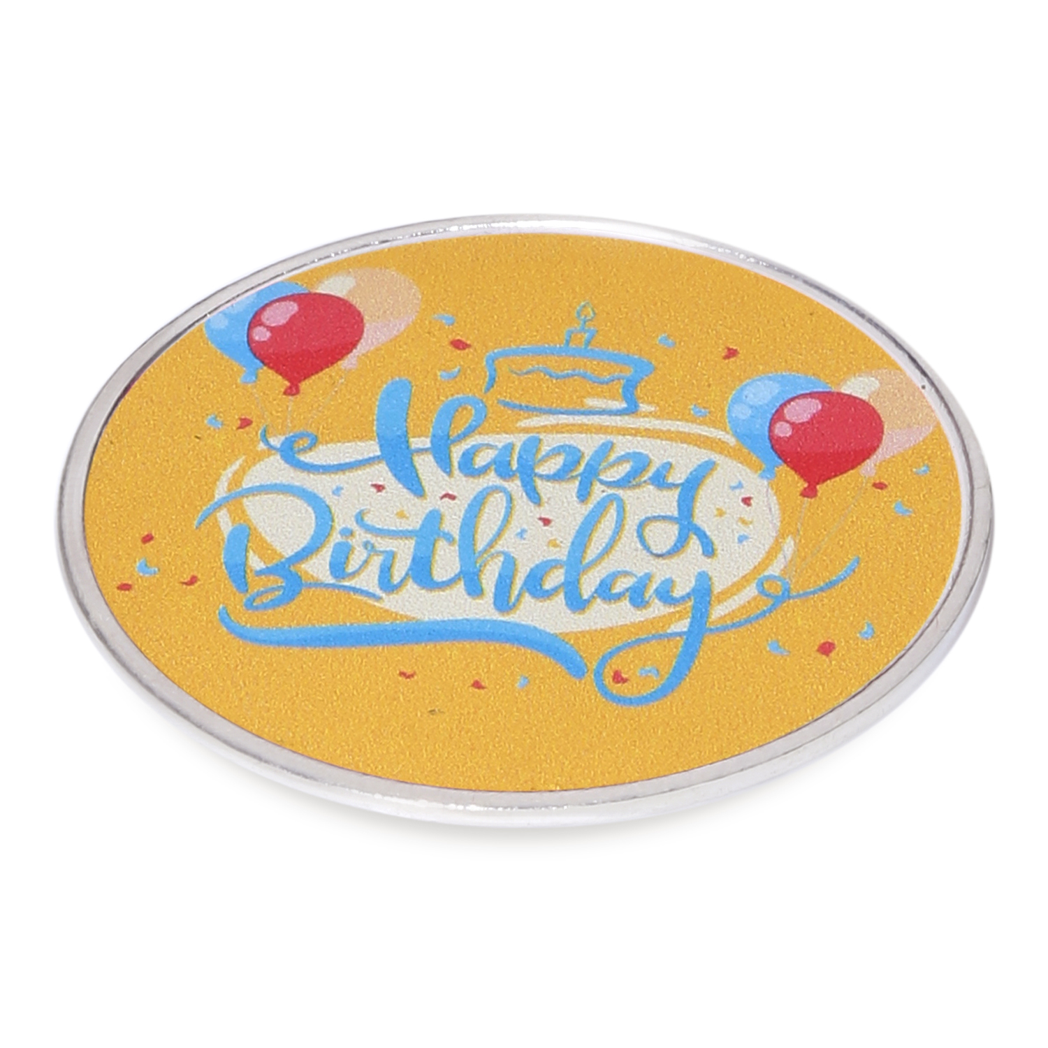 The front of the coin has a beautiful yellow background with the words “Happy Birthday” written in the centre and decorated with balloons and cake around it. The back of the coin is inscribed with our logo and BIS Hallmark. This may however vary on availability.
