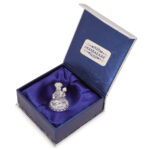 Packed in a Silver Leatherette and Blue Satin/Velvet Box. You get a Silver Care Kit and Gift Kit with this item.