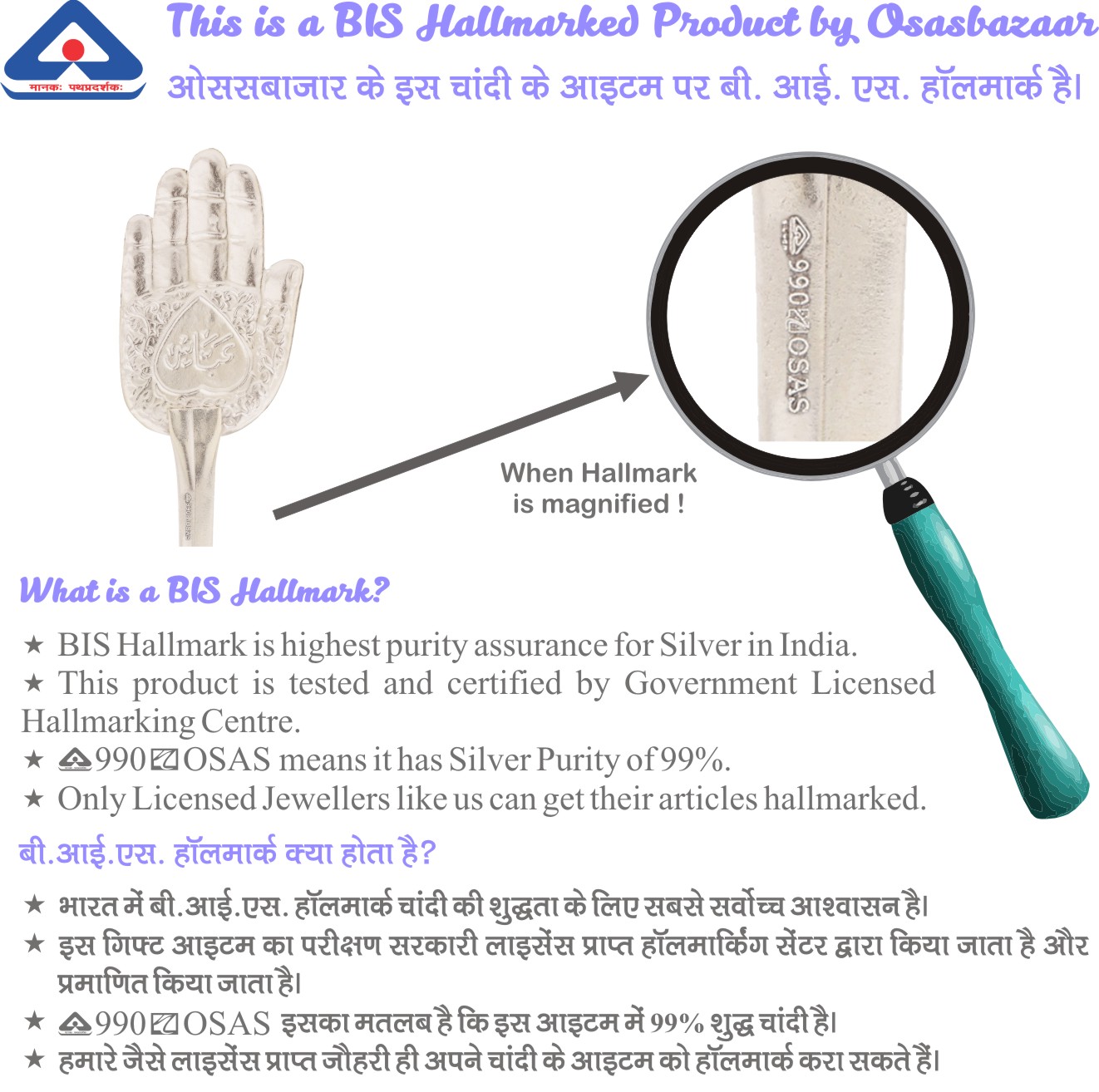 Osasbazaar Silver Panja Alam Small – BIS Hallmarked: