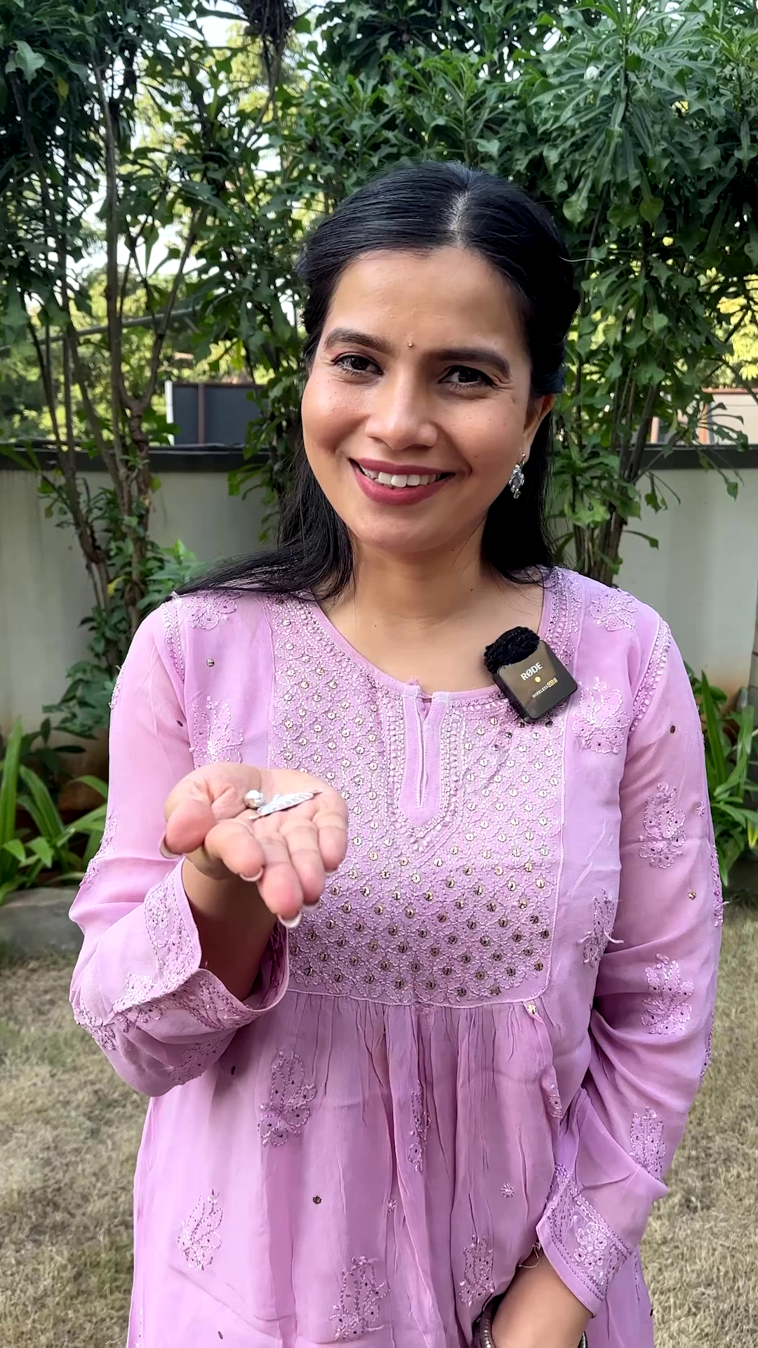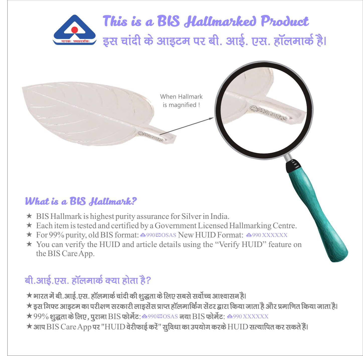 Tulsi – Length: 3.8 cms, Width: 2.2 cms; Nariyal – Length: 1.5 cms, Width: 1 cm; Rice – Length: 0.9 cm. Total Silver Weight: Approx. 2-3 gms. (Silver articles are handmade so, weight might differ). Check ‘Dimensions’ image.