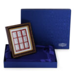Inner Silver Sheet Length: 8 cms, Width: 6.5 cms. Wooden Frame Length: 13.4 cms, Width: 12 cms. Silver Weight: Approx. 1 gm