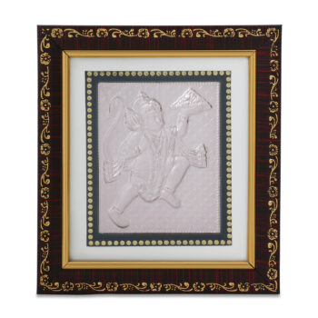 A beautiful image of your favorite God on a pure silver sheet. The wooden frame has clear acrylic front with golden borders which add more beauty to the whole frame. It has a hook attached for wall mounting along with a table stand.