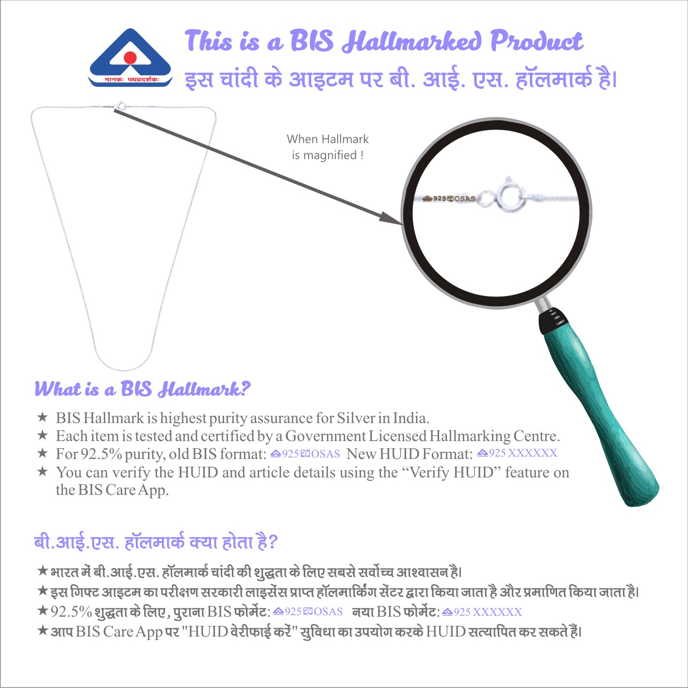 ♥ Material: The Chain is wholly made of Silver only. Silver Purity: 90%-92.5%. Certification: BIS Hallmarked Items.