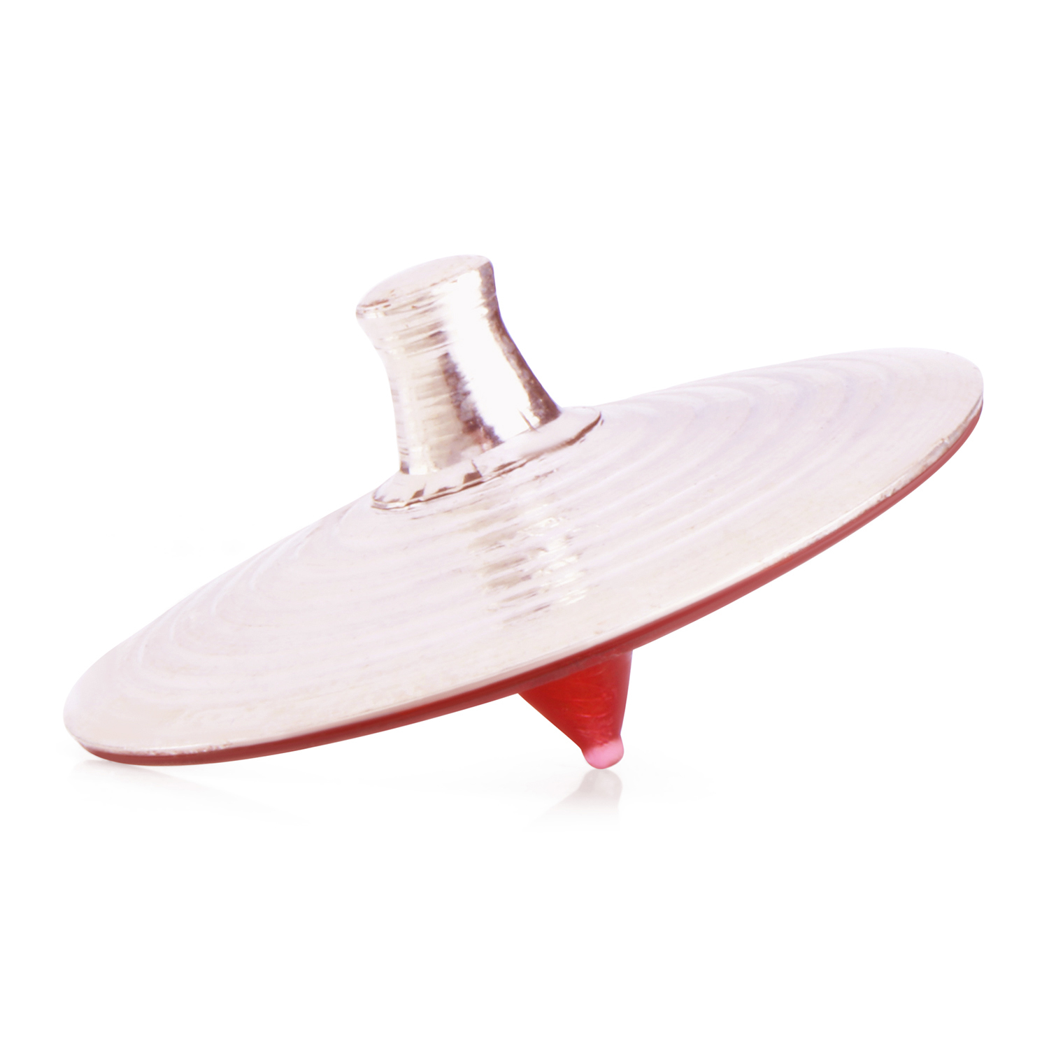 This is a spinning top covered with a thin layer of silver on one side. The shiny silver coating makes it look attractive, while the plastic underneath keeps it light and strong. It combines the traditional spinning top design with a modern silver finish, giving it a nice mix of old and new styles.