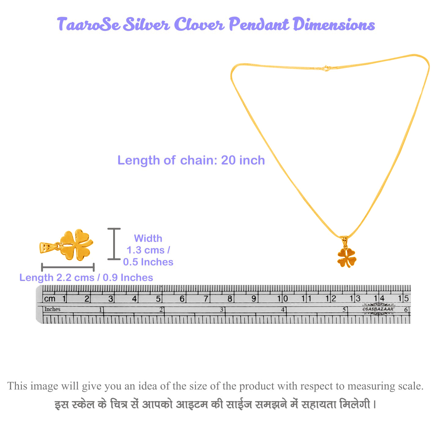 ♥ Dimensions: Length: 2.2 cm Width: 1.3 cms. Pendant Weight: Approx. 1.7-1.9 gms. Chain Length: 20 Inches. Chain Weight: Approx. 3.5-4.5 gms