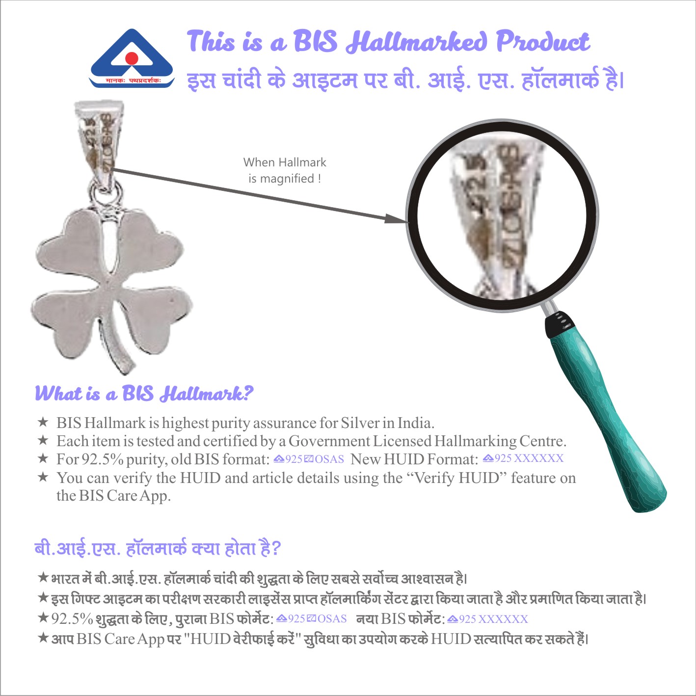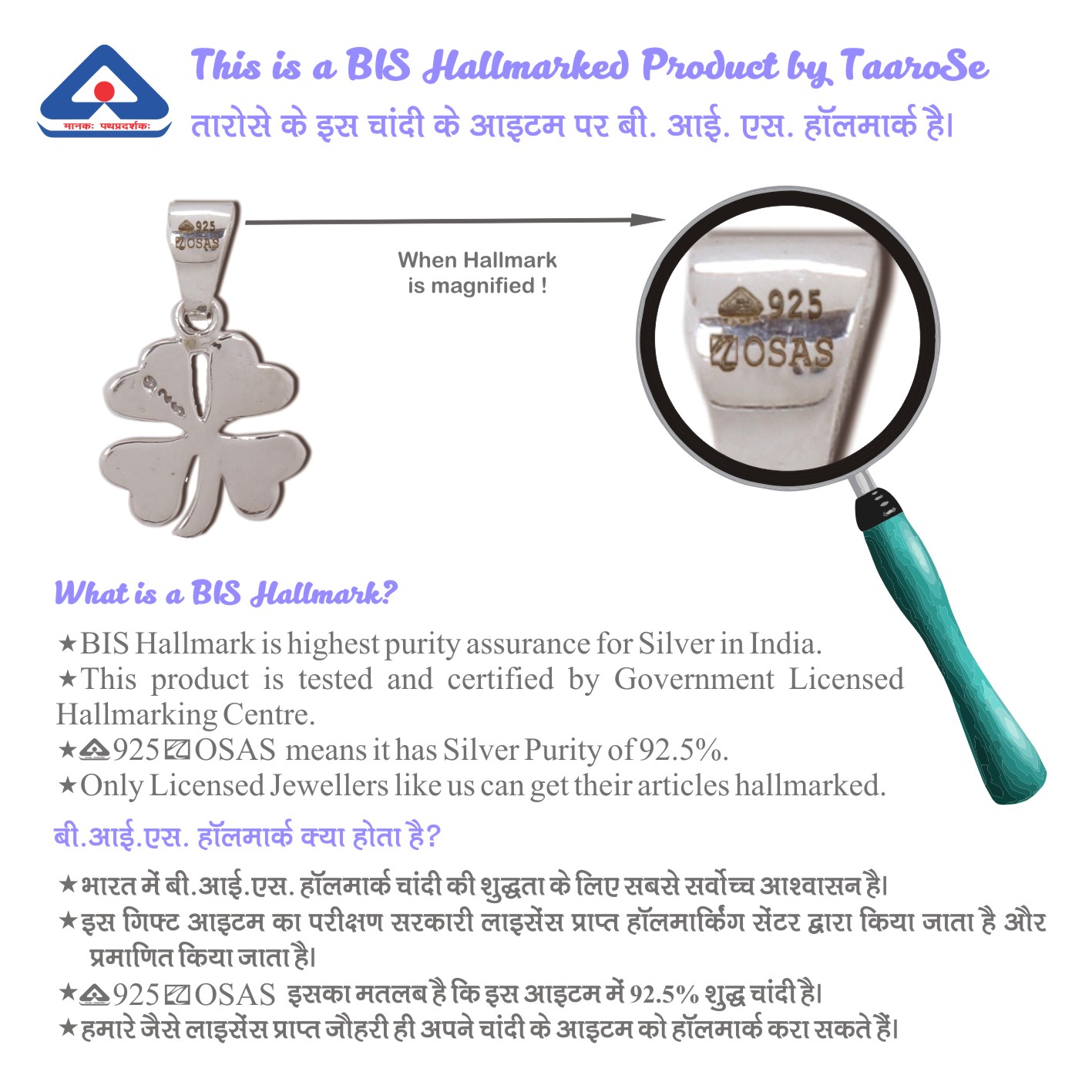 Taarose by Osasbazaar 925 Sterling Silver Clover Pendant and Chain Set – Unisex – BIS Hallmarked: