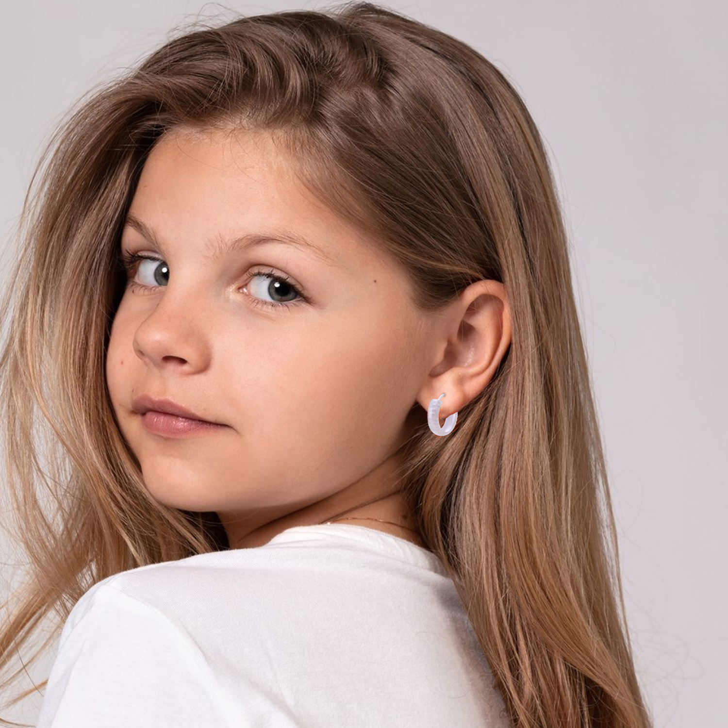 Make your beloved children look stylish with our cute and charming silver ear hoops. These trendy earrings are made from pure silver, which is safe and anti-allergic, perfect for the delicate ears of kids. Not only do they make a fashion statement, but they also bring positivity and keep negative energy away. These earrings are a lifetime memento and investment, making them the best gift for your precious kids. Let them shine and cherish this thoughtful and stylish accessory.