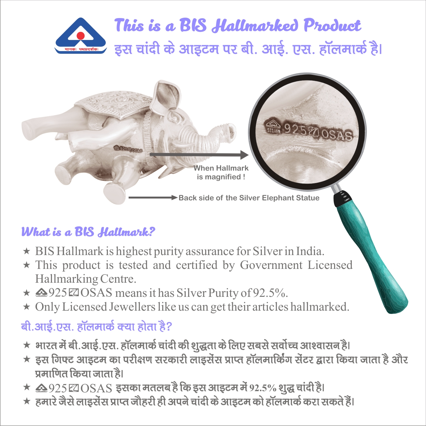 Osasbazaar Sterling Silver Elephant Statue – BIS Hallmarked: