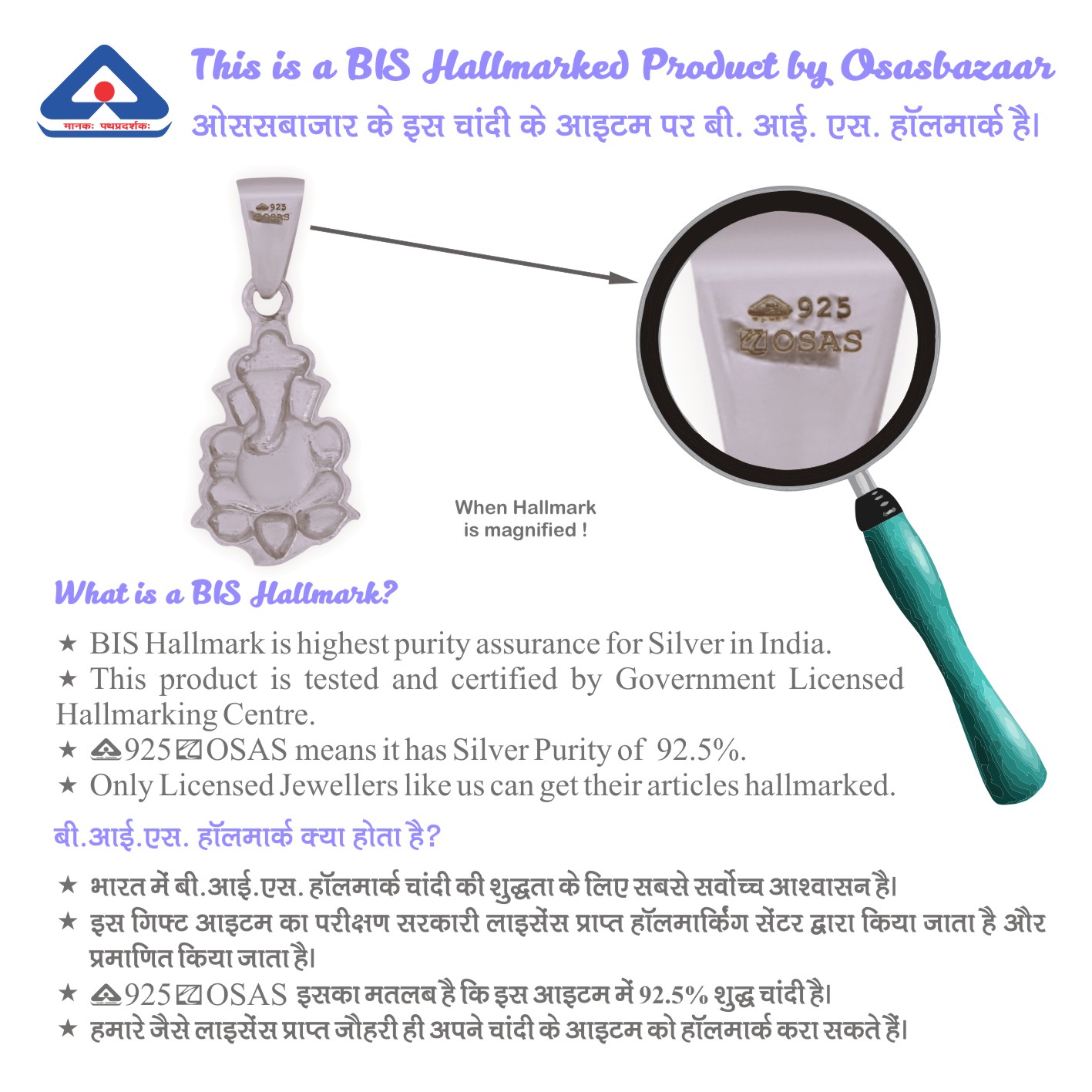 Taarose by Osasbazaar 925 Sterling Silver Ganesh ji Pendant and Chain Set – Unisex – BIS Hallmarked: