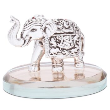 An enchanting Ganesh ji statue on a glass base. It is beautifully crafted with excellent features. The idols have a hybrid oxidised and glossy polish, which gives it a detailed look.