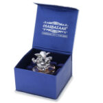 Packed in a Silver Leatherette and Blue Satin/Velvet Box. You get a Silver Care Kit, Anti Tarnish Strip and Gift Kit with this item