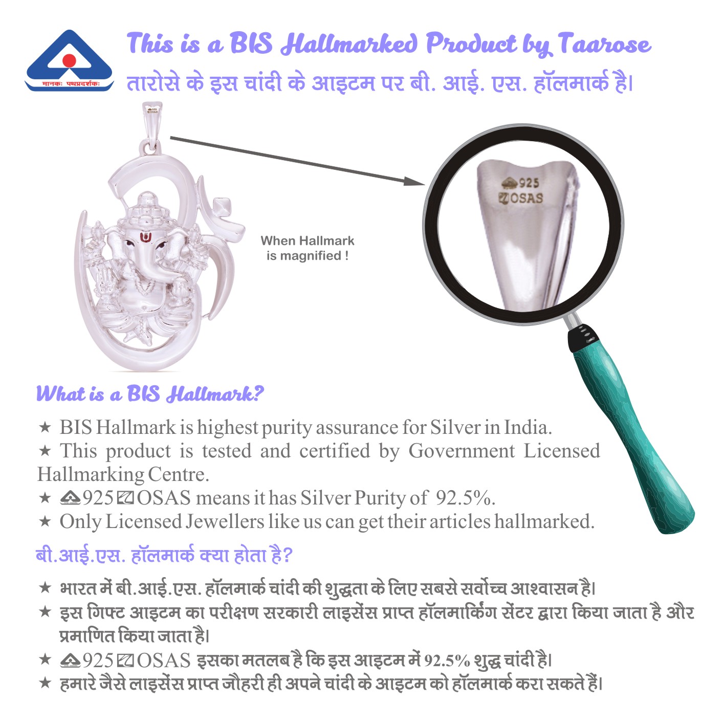 The Pendant is wholly made of Silver only. Silver Purity: 92.5%. Certification: BIS Hallmarked Item