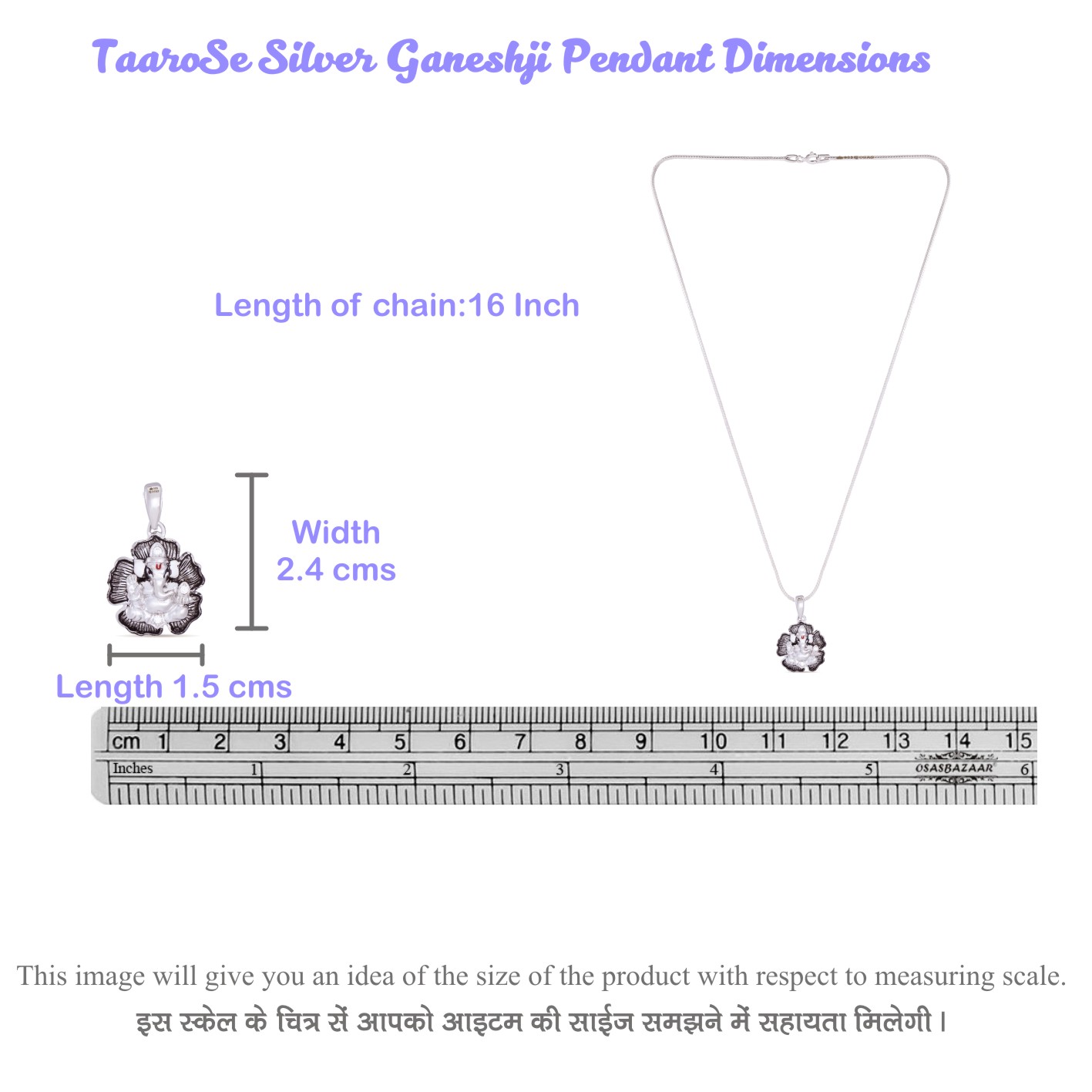 Taarose by Osasbazaar 925 Sterling Silver Pendant and Chain – BIS Hallmarked: