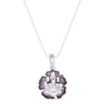 Home Shop Kids Jewellery Kids Pendant and Chain Silver Ganeshji in Hibiscus Flower Pendant and 16 inch Chain for Kids