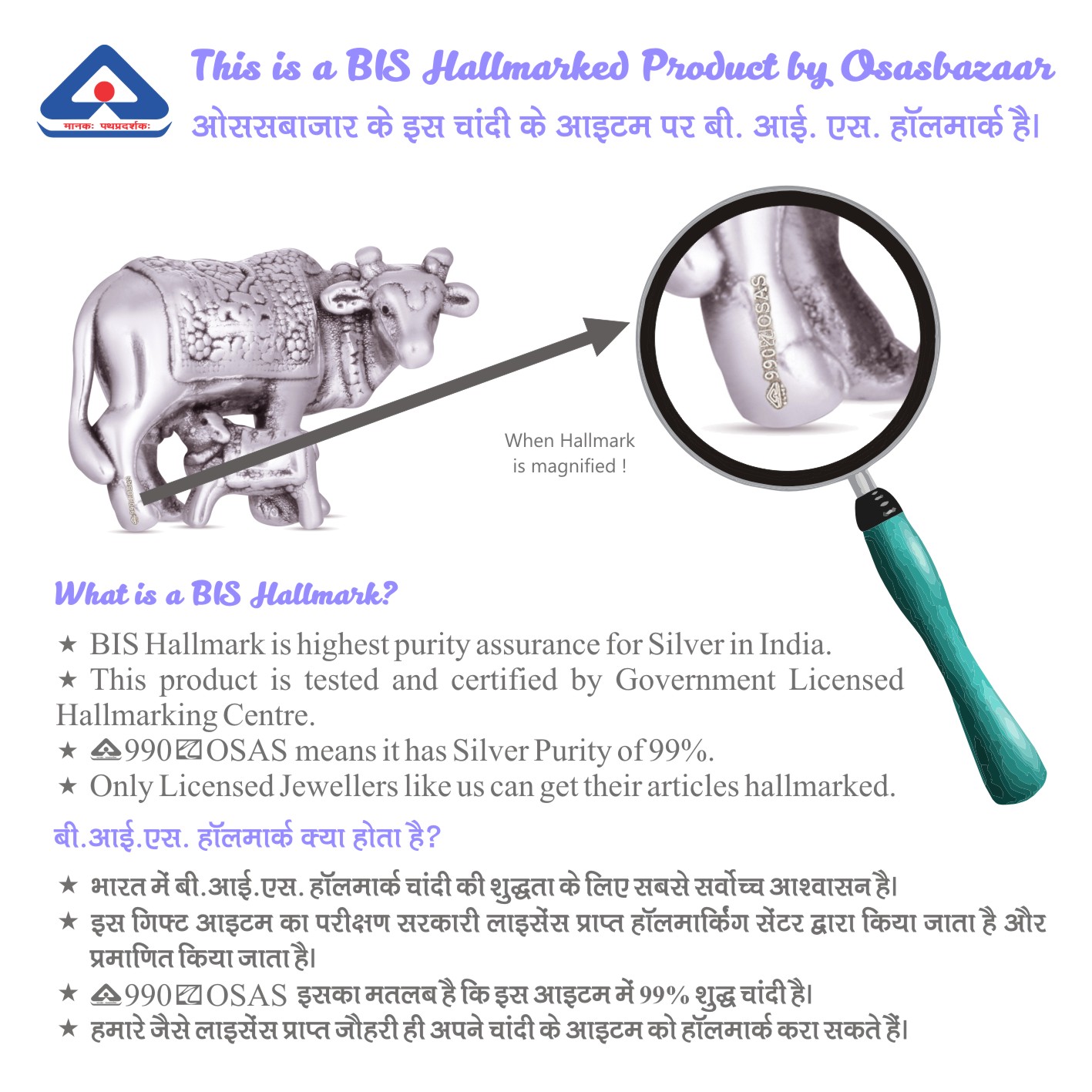 Osasbazaar Pure Silver Kamadhenu Statue – BIS Hallmarked: