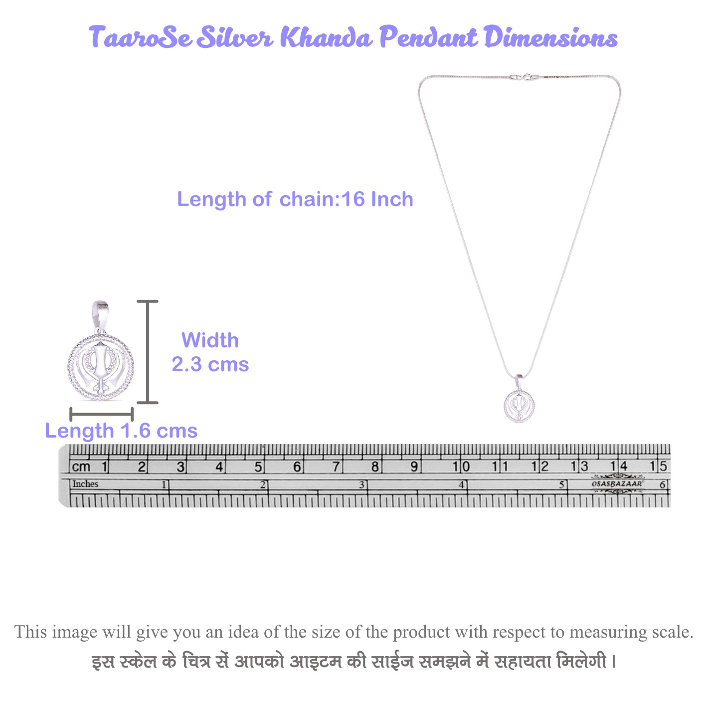 Taarose by Osasbazaar 925 Sterling Silver Pendant and Chain – BIS Hallmarked: