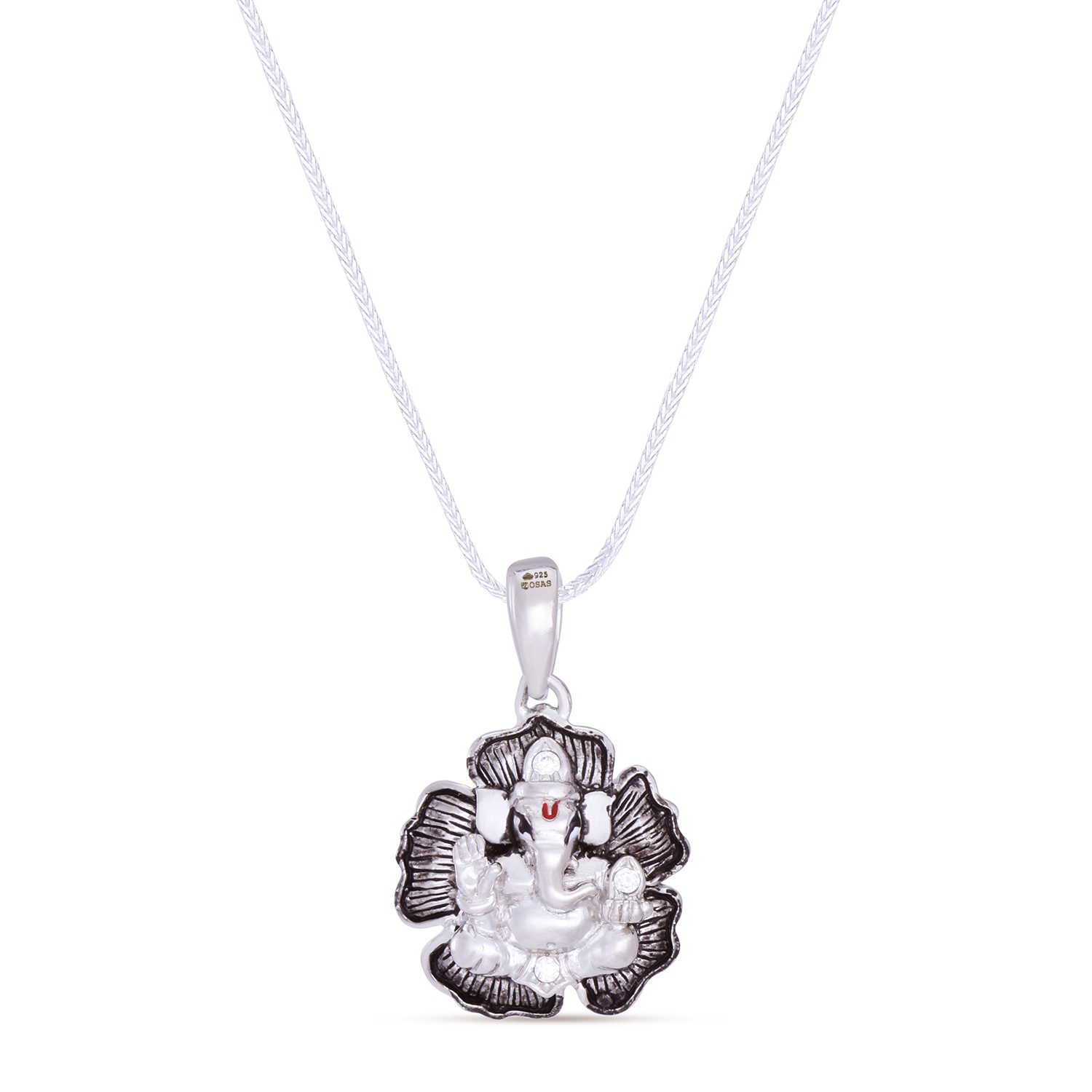 The Pendant and Chain are wholly made of Silver only. Silver Purity: 92.5%. A black thread is included in the box which has a non-silver metal clasp. Certification: BIS Hallmarked Item