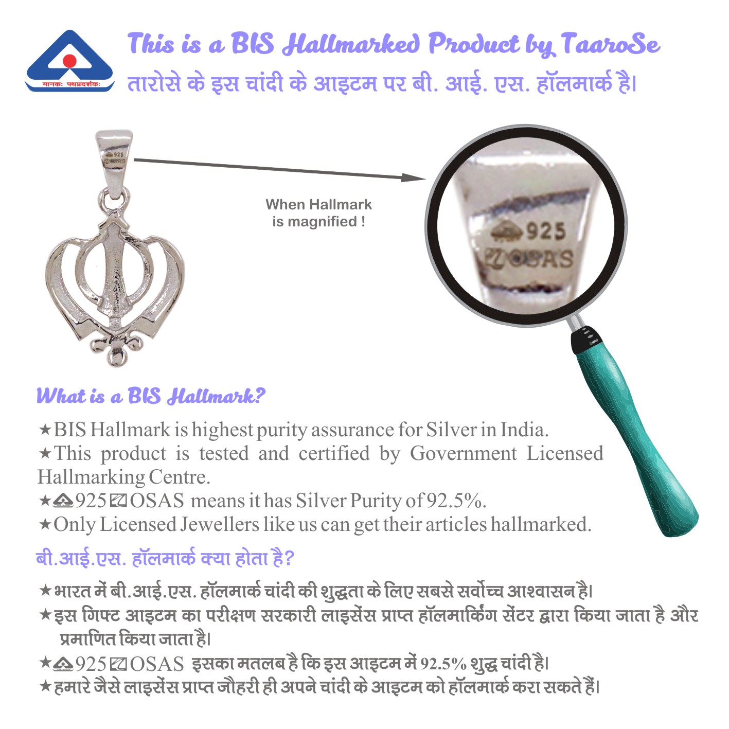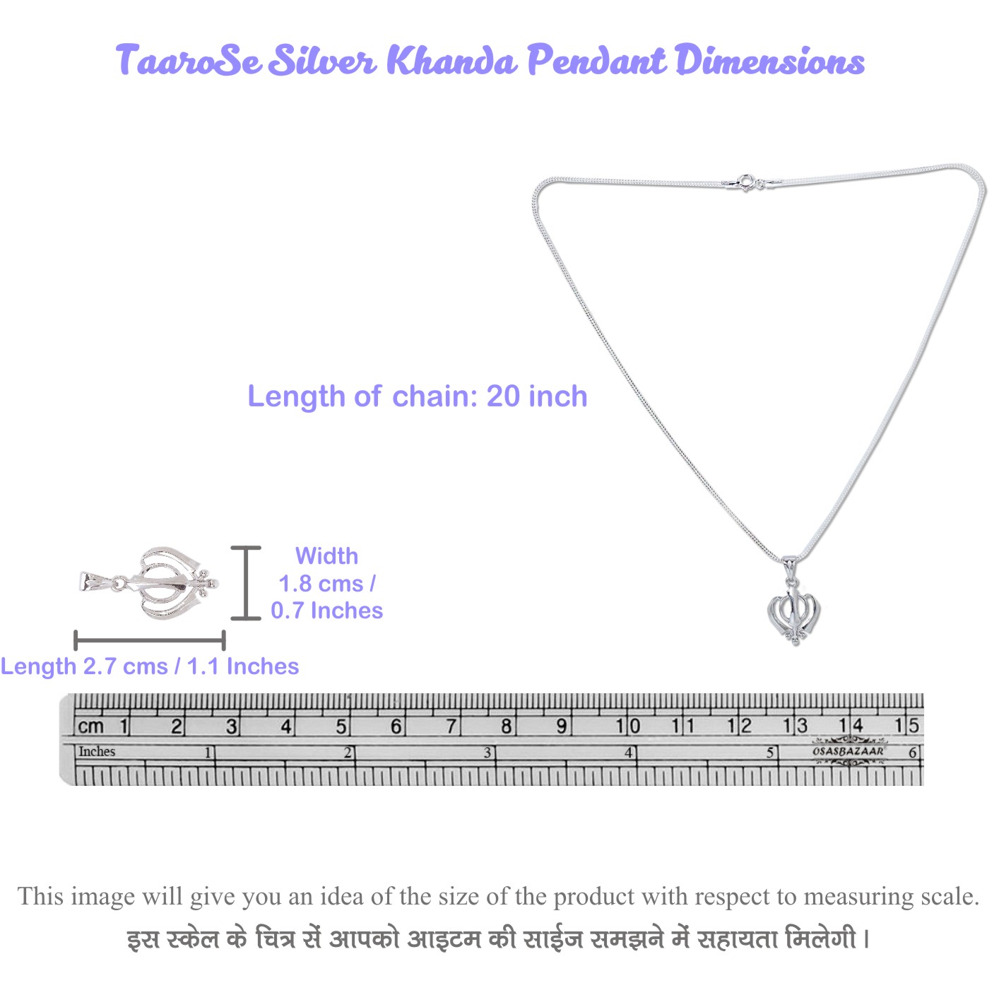 Taarose by Osasbazaar 925 Sterling Silver Khanda Pendant and Chain Set – Unisex – BIS Hallmarked:
