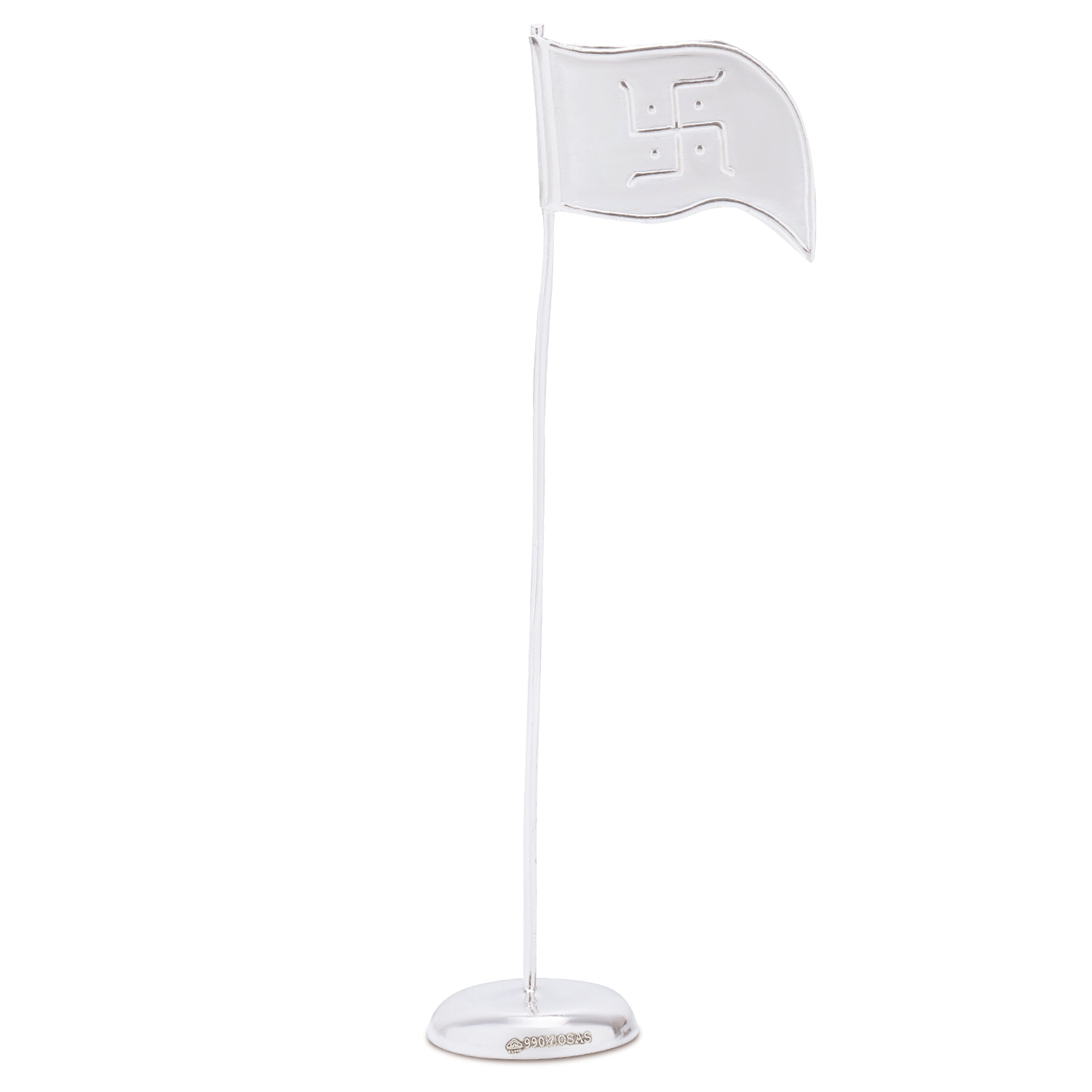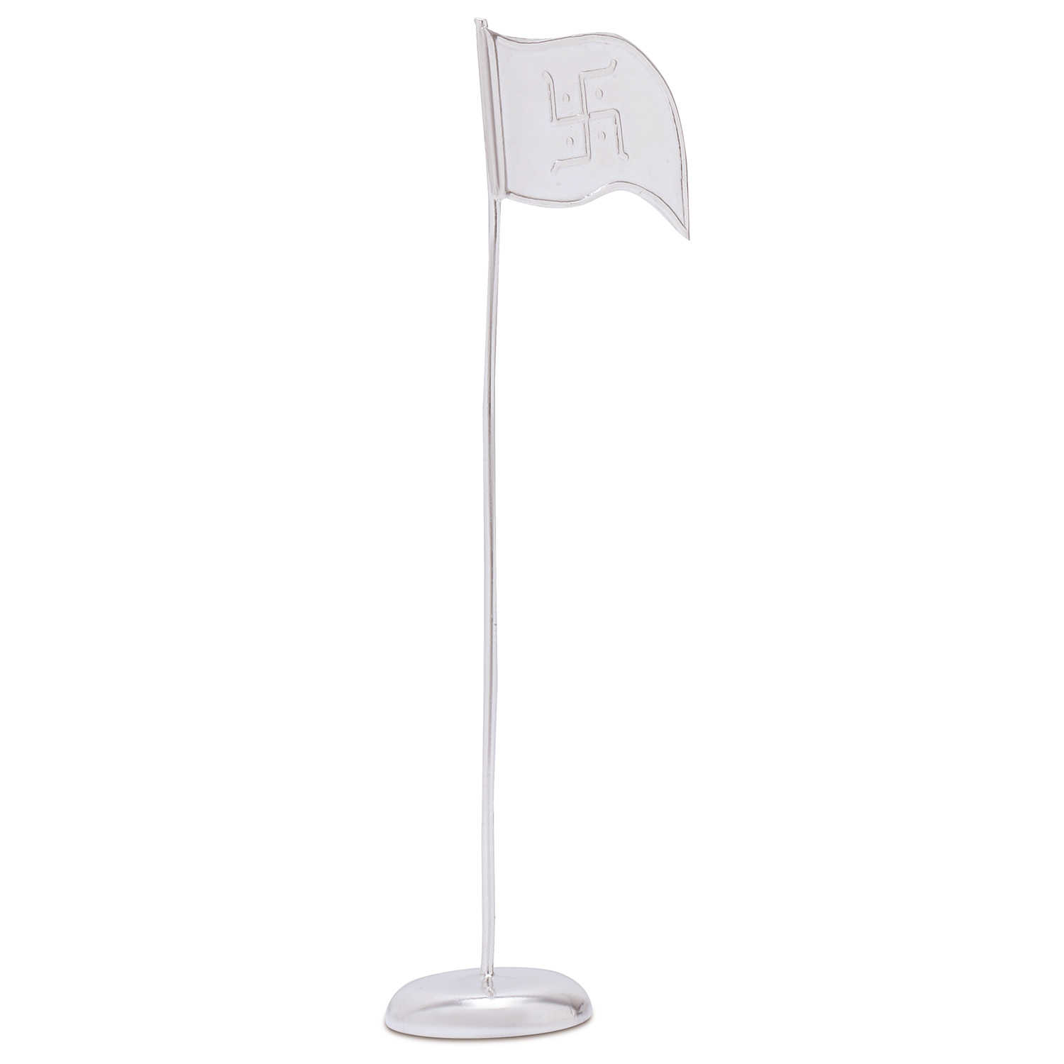 The flag features a round base that ensures stability, allowing it to stand with grace and prominence. A swastik is intricately crafted on the flag.