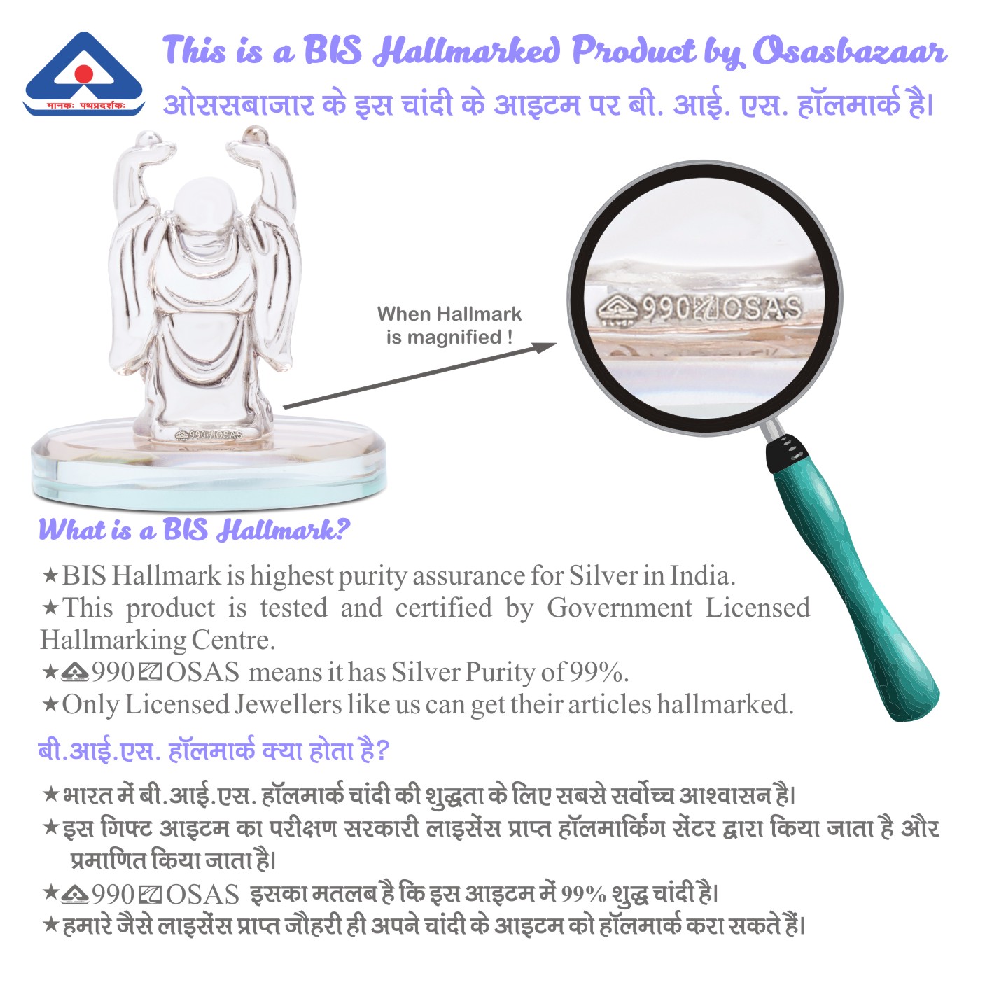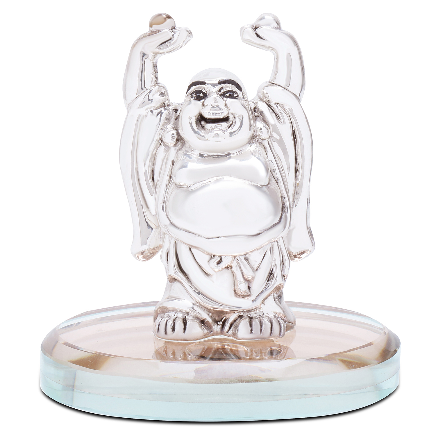 Osasbazaar Pure Silver Laughing Buddha Statue on a Glass Base – BIS Hallmarked: