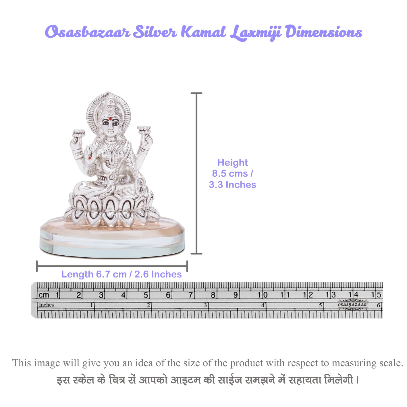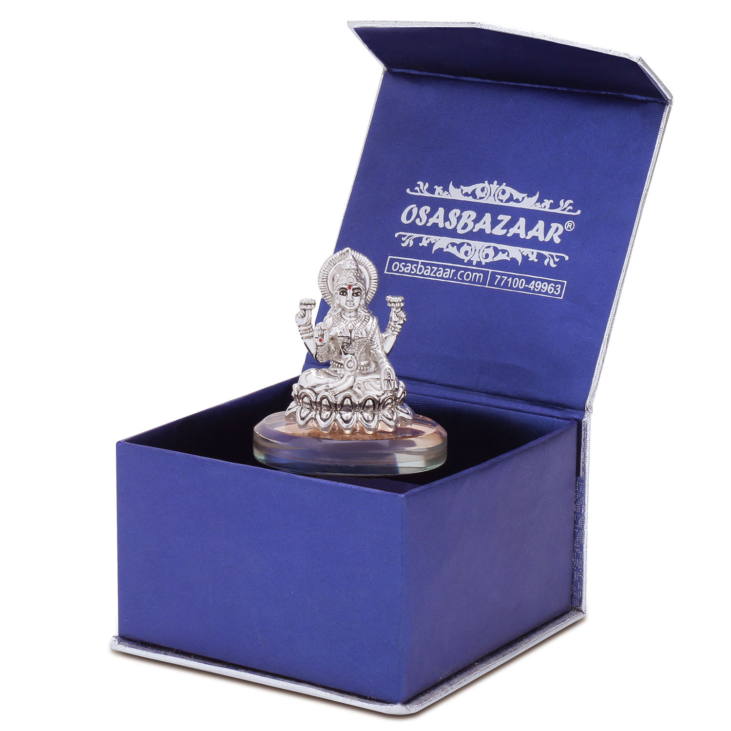 Osasbazaar Pure Silver Lakshmi Statue on Kamal Lotus on a Glass Base for Puja and Gifting – BIS Hallmarked: