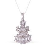 Our Goddess Lakshmi ji Pendant is a divine fusion of elegance and spirituality. Adorned with sparkling cubic zirconia, this pendant beautifully captures the essence of Goddess Lakshmi, radiating opulence and blessing your ensemble with a touch of celestial charm. It comes with a silver snake chain which does not tangle easily, nor catches on hair or other objects.
