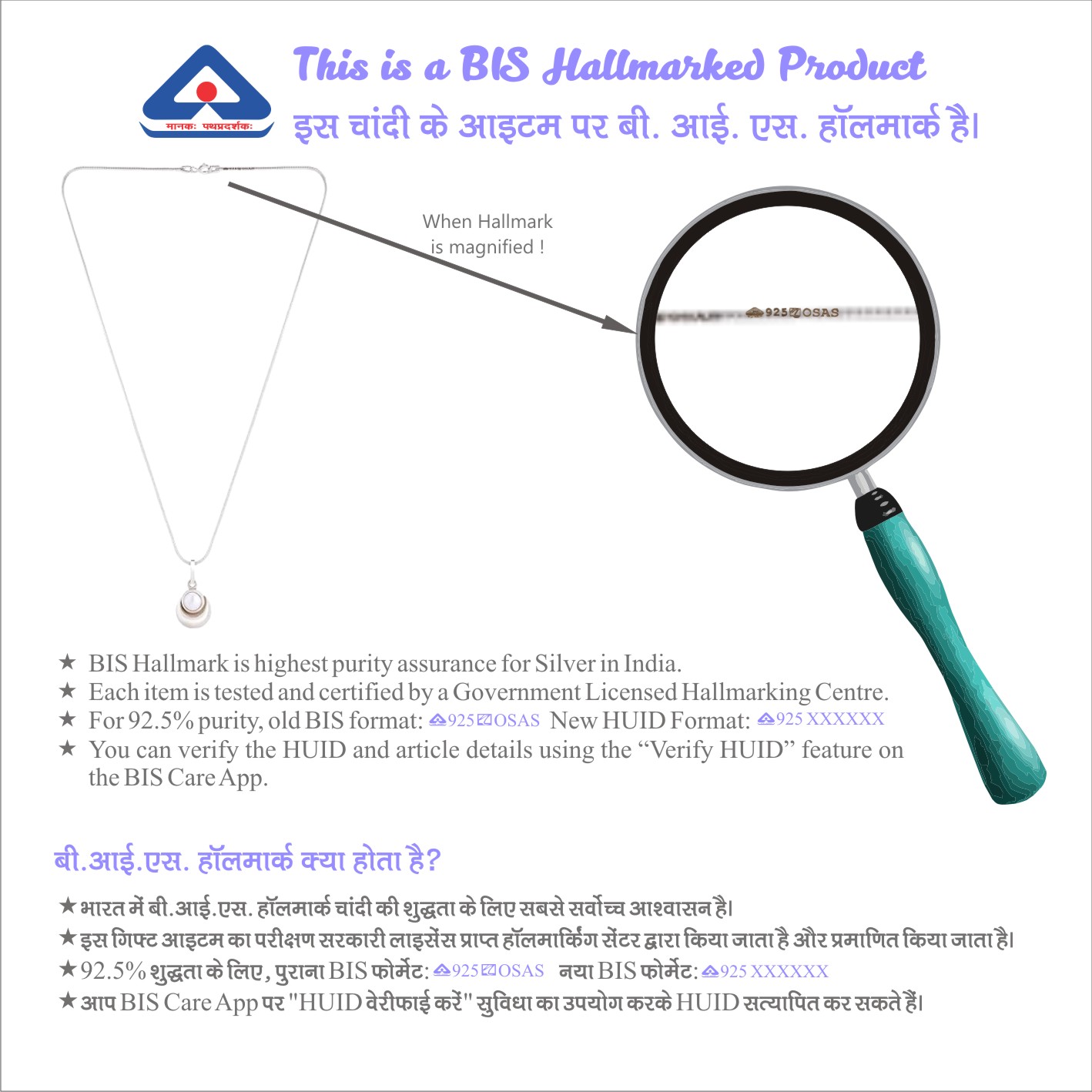 The Pendant and Chain are wholly made of Silver only. Silver Purity: 92.5%. A black thread is included in the box which has a non-silver metal clasp. Certification: BIS Hallmarked Item