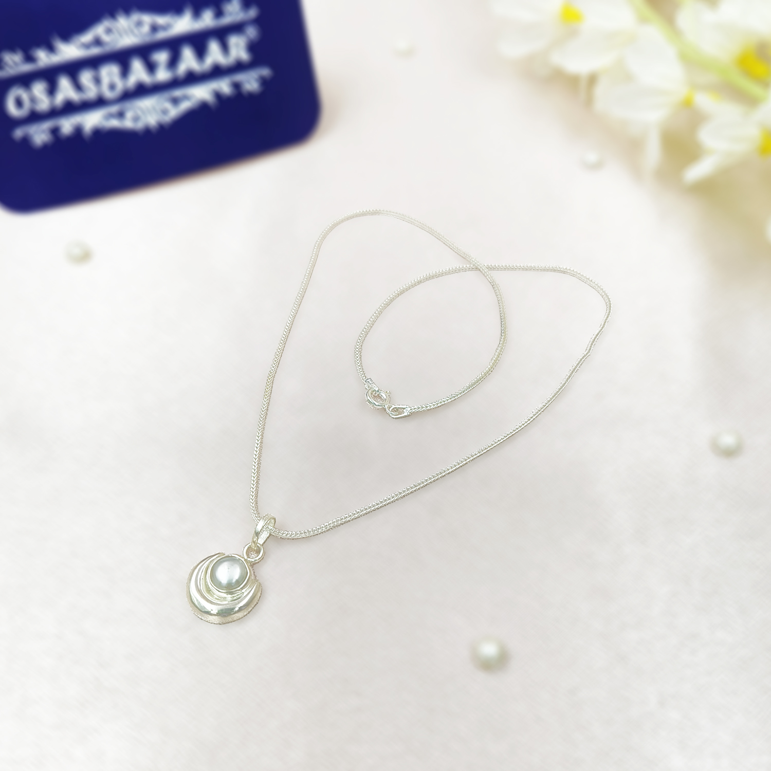 This Chain and Pendant is a beautiful piece of jewellery made from pure silver that has many benefits. The pendant is designed with beautiful details that showcases the royal vibe of pure silver and the chain is sturdy and comfortable and easy to wear. Silver is pure metal which has a connection to earths energy. It is also known for its spiritual significance as it is believed to have healing properties. It can help keep negative energies away and increases positive and divine energy. This beautiful piece of jewellery is perfect for your kids. Its anti-allergic property will keep your skin safe and comfortable. Wear it daily!
