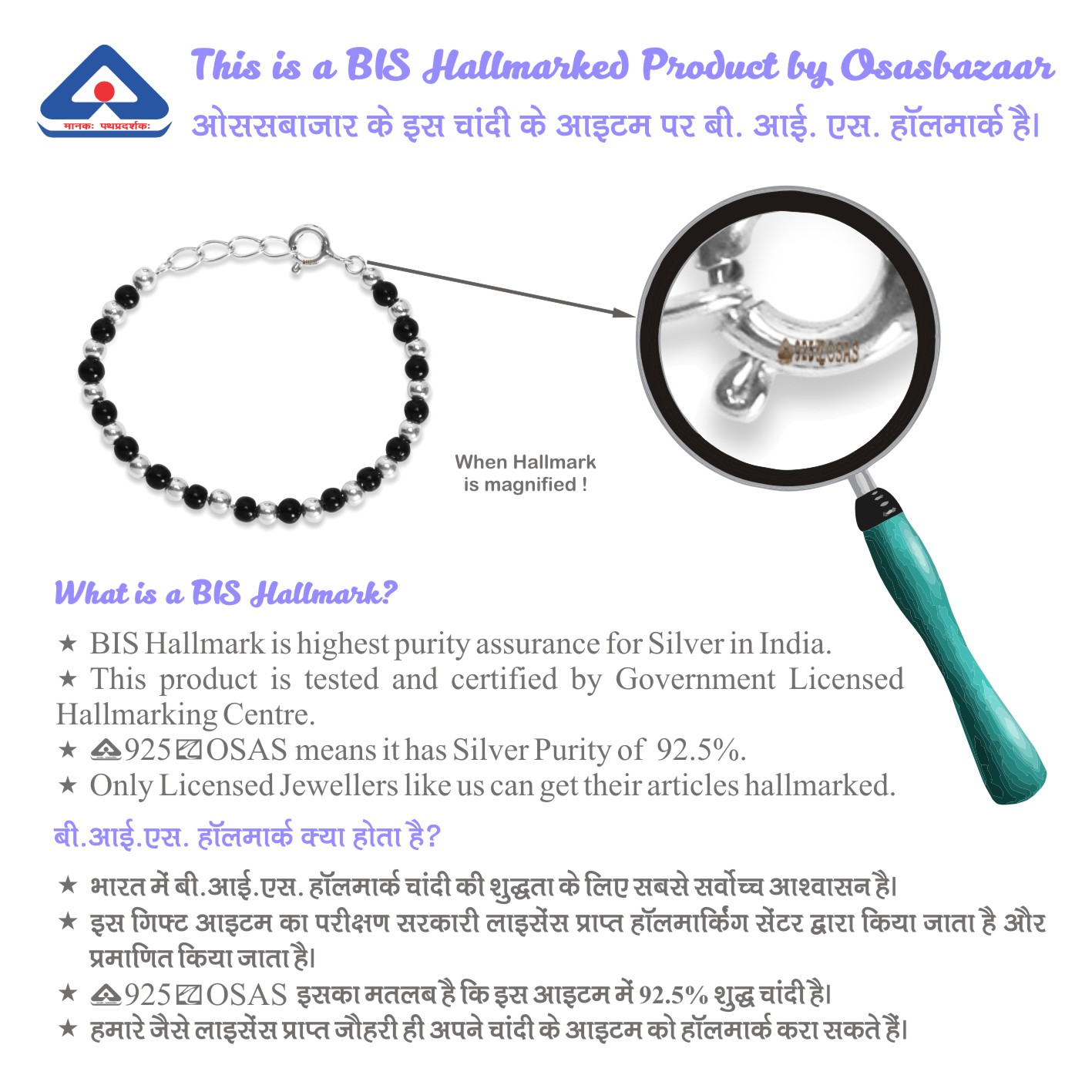 ♥ Material: The pendants, rings, chain, clasp and silver beads are wholly made of Silver only. Silver Purity: 90%-92.5%. Certification: BIS Hallmarked Items