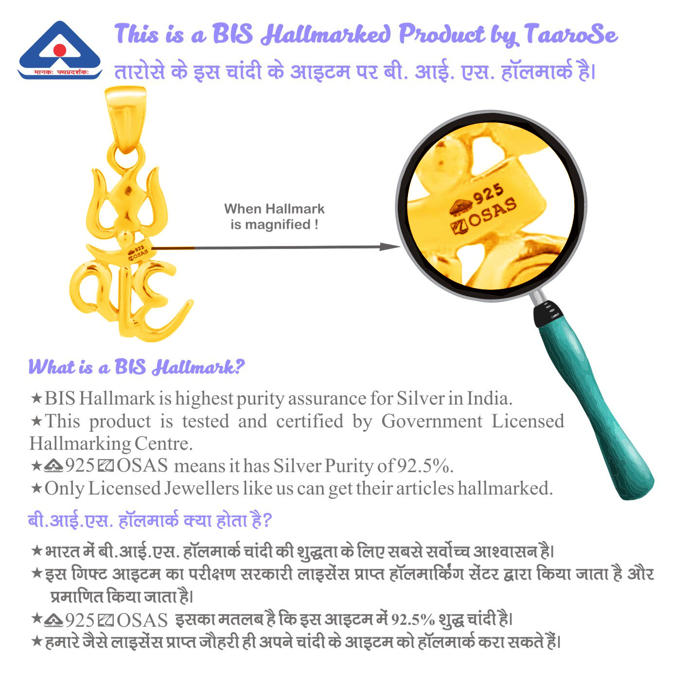 Taarose by Osasbazaar 925 Sterling Silver Om Trishul Pendant and Chain Set – Unisex – BIS Hallmarked: