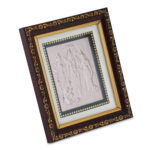 Inner Silver Sheet Length: 8 cms, Width: 6.5 cms. Wooden Frame Length: 13.4 cms, Width: 12 cms. Silver Weight: Approx. 1 gm