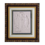 A beautiful image of your favorite God on a pure silver sheet. The wooden frame has clear acrylic front with golden borders which add more beauty to the whole frame. It has a hook attached for wall mounting along with a table stand.