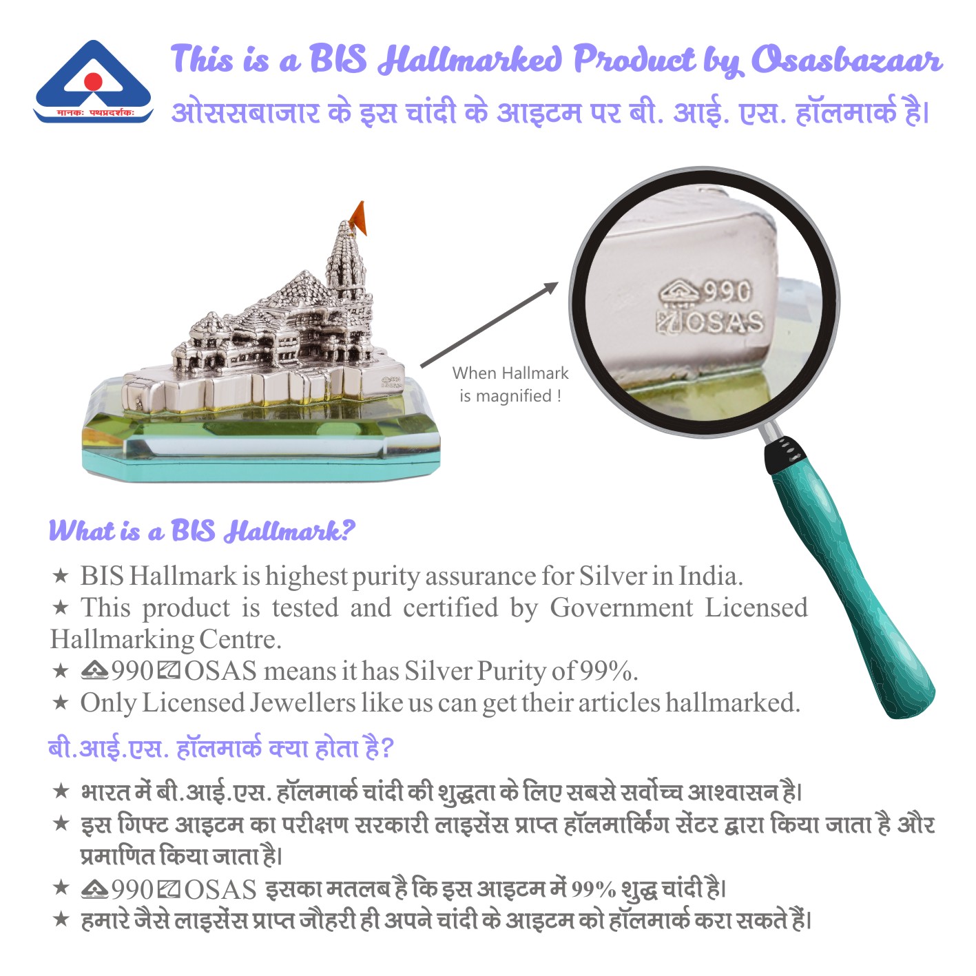 Osasbazaar Silver Ram Mandir Statue on a Glass Base – BIS Hallmarked:
