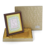 The inner sheet is made of Pure Silver. It’s not thin like other silver frames. It’s at least 5 gms of pure silver. Silver Purity: 97%-99%. The outer frame is made of wood and front is clear acrylic.