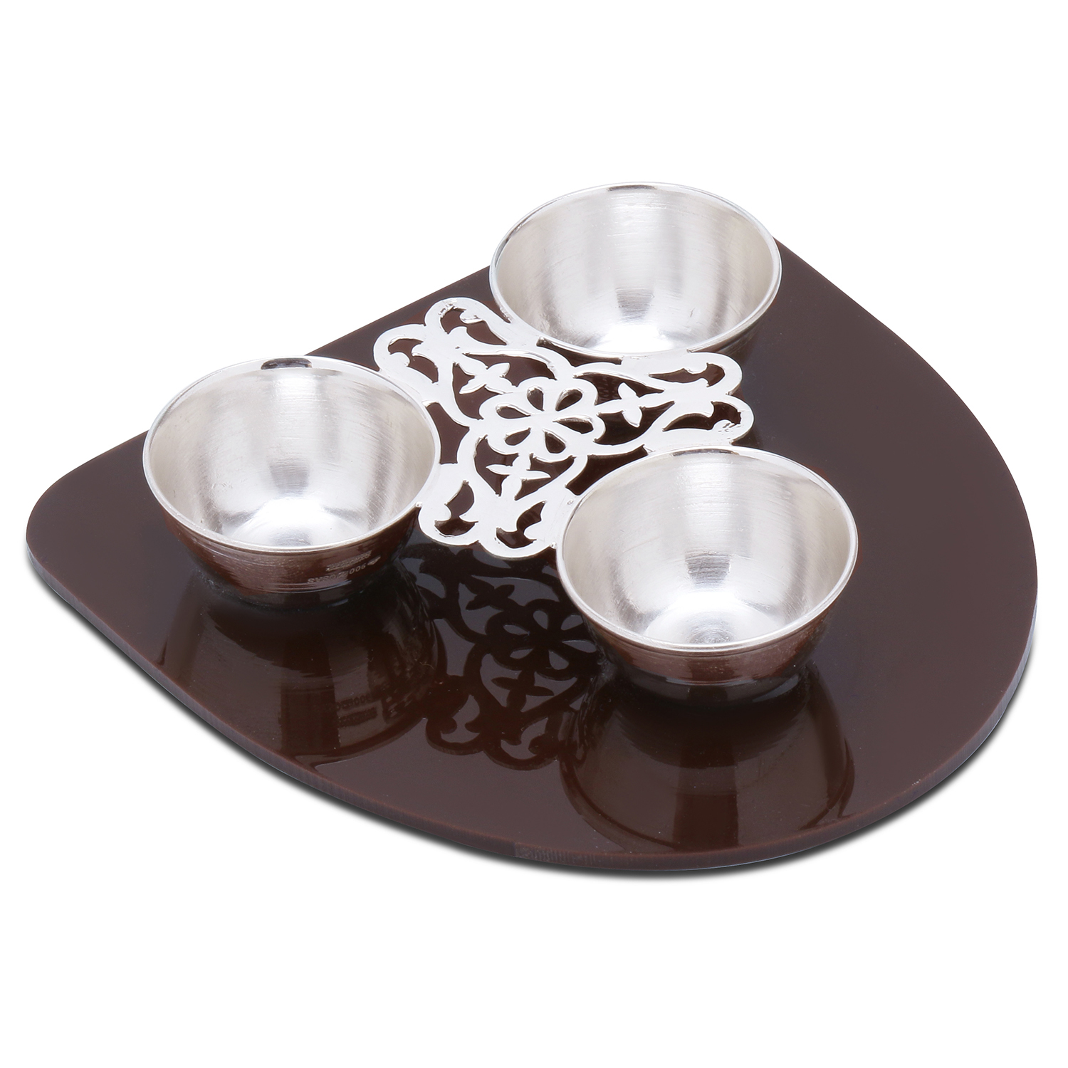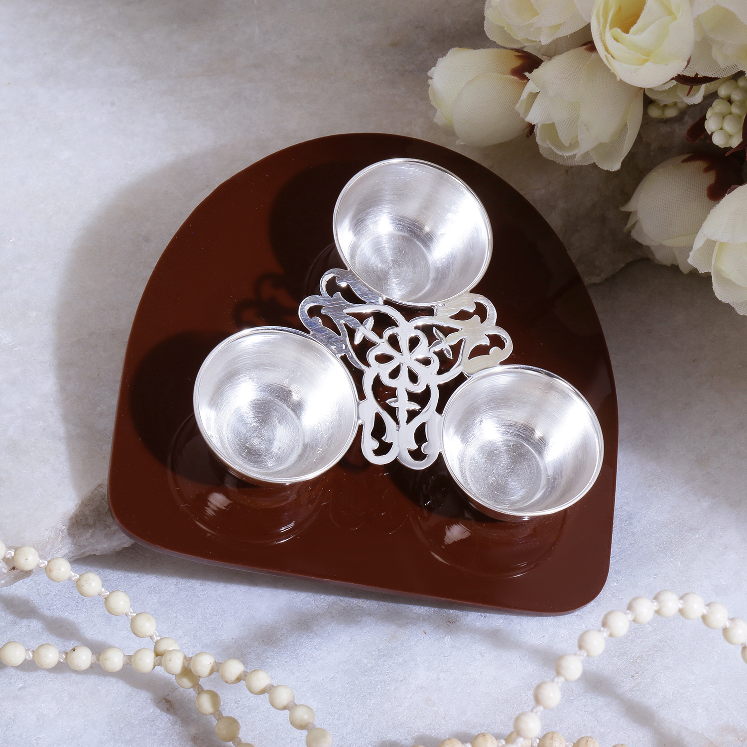 Length: 9.2 cm Width: 9.2 cms, Height: 2.2 cms. Silver Weight: Approx. 18-21 gms. (Silver articles are handmade so, weight might differ). Check ‘Dimensions’ image.