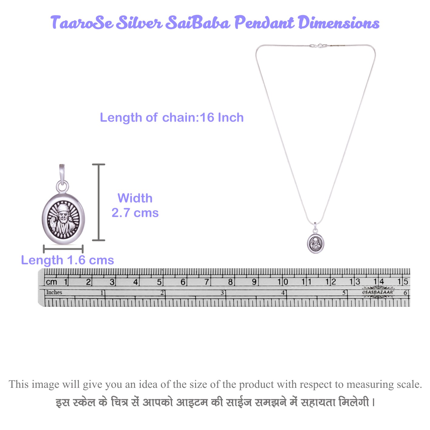 Taarose by Osasbazaar 925 Sterling Silver Pendant and Chain – BIS Hallmarked: