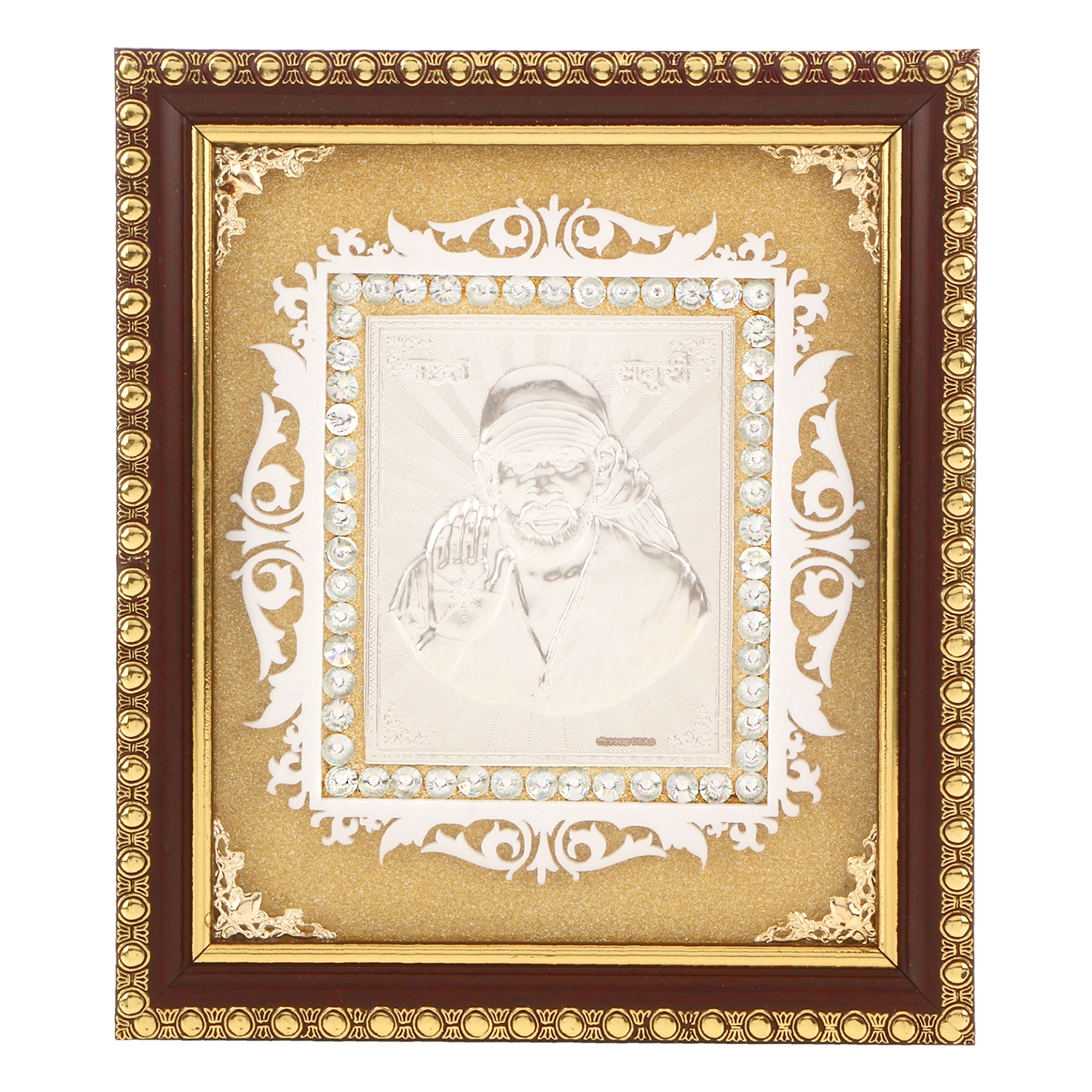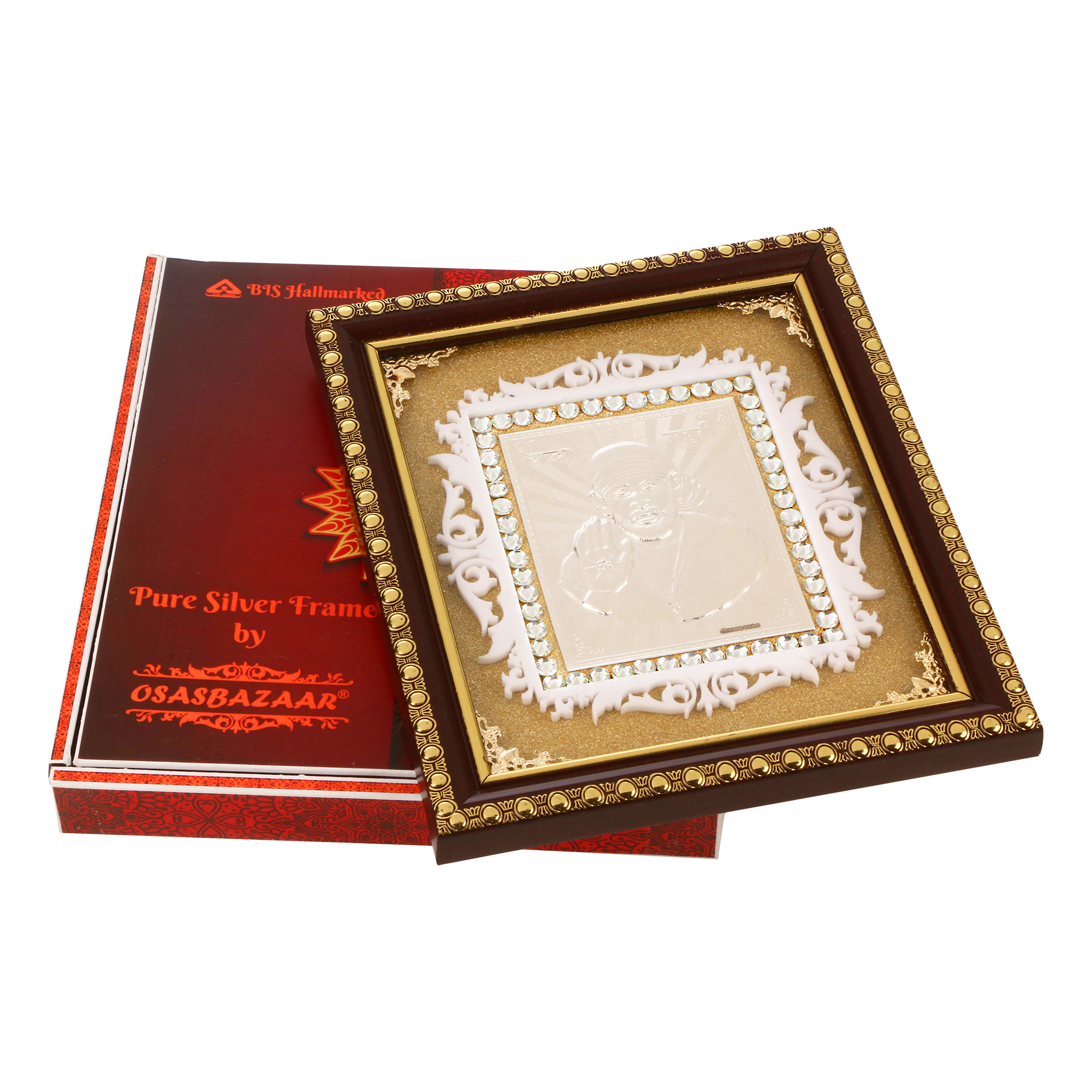 Osasbazaar® Pure Silver Shirdi Sai Baba Photo Frame – 97%-99% Pure BIS Hallmarked: