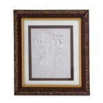 A beautiful image of your favorite God on a pure silver sheet. The wooden frame has clear acrylic front with golden borders which add more beauty to the whole frame. It has a hook attached for wall mounting along with a table stand.