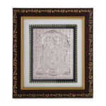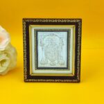 A beautiful image of your favorite God on a pure silver sheet. The wooden frame has clear acrylic front with golden borders which add more beauty to the whole frame. It has a hook attached for wall mounting along with a table stand.