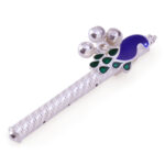This beautiful flute looks like a small version of a real flute. It has a beautiful enamel peacock on one side with small ghungroos which add divine beauty to the flute